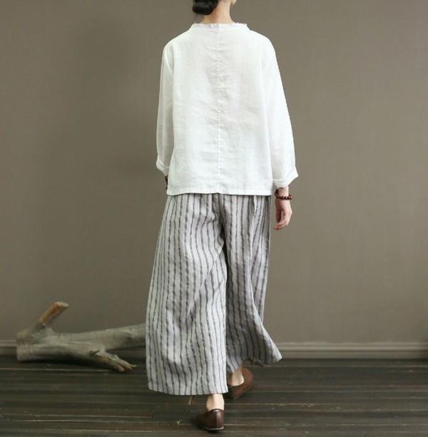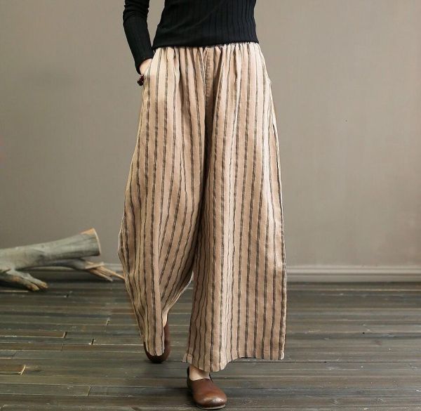 M サイズ : パンツ丈87cm ウエストゴム ヒップ102cm L サイズ : パンツ丈88cm ウエストゴム ヒップ106cm XL サイズ : パンツ丈89cm ウエストゴム ヒップ110cm 2XL サイズ : パンツ丈90cm ウエストゴム ヒップ114cm 3XL サイズ : パンツ丈91cm ウエストゴム ヒップ118cm 素材 : 綿麻 |