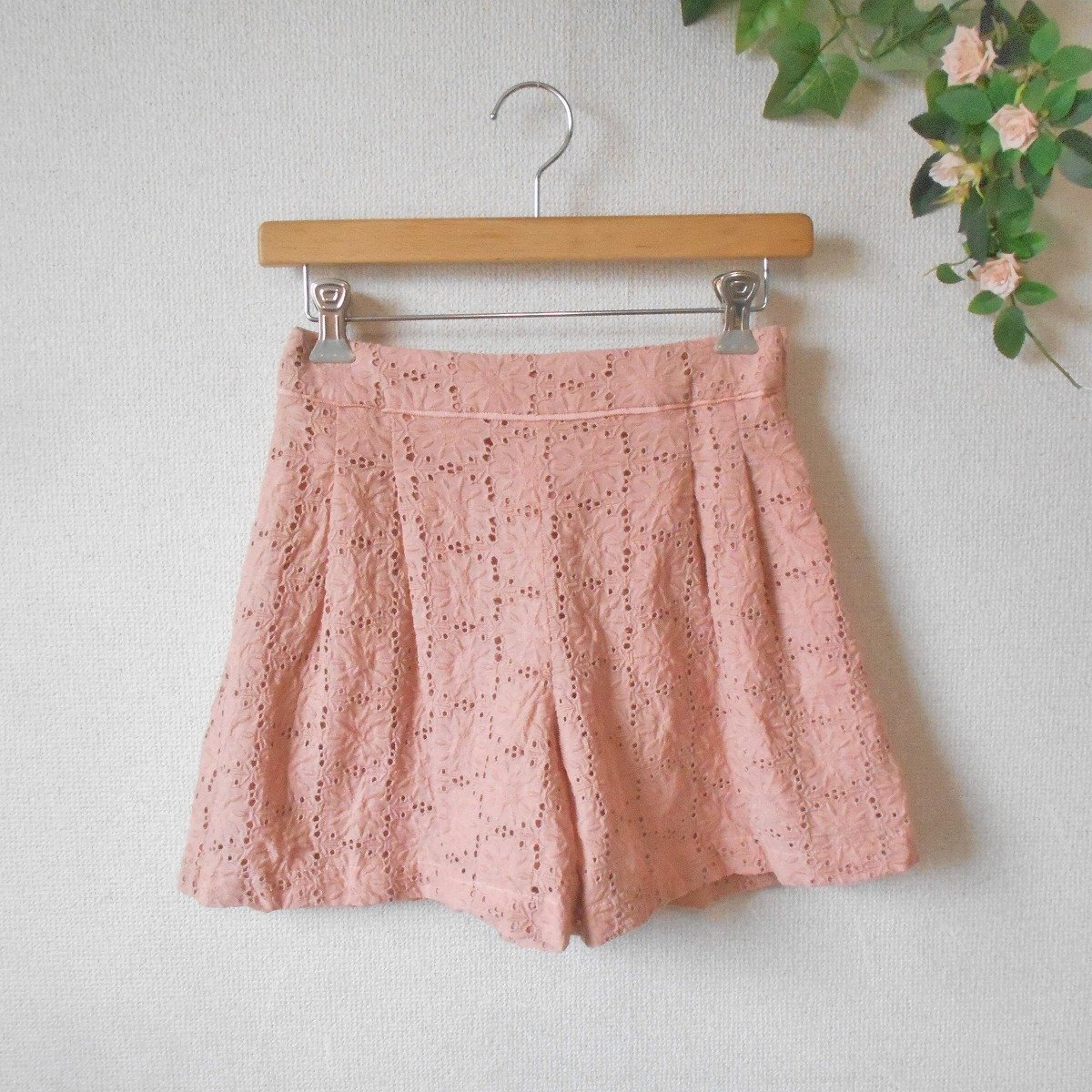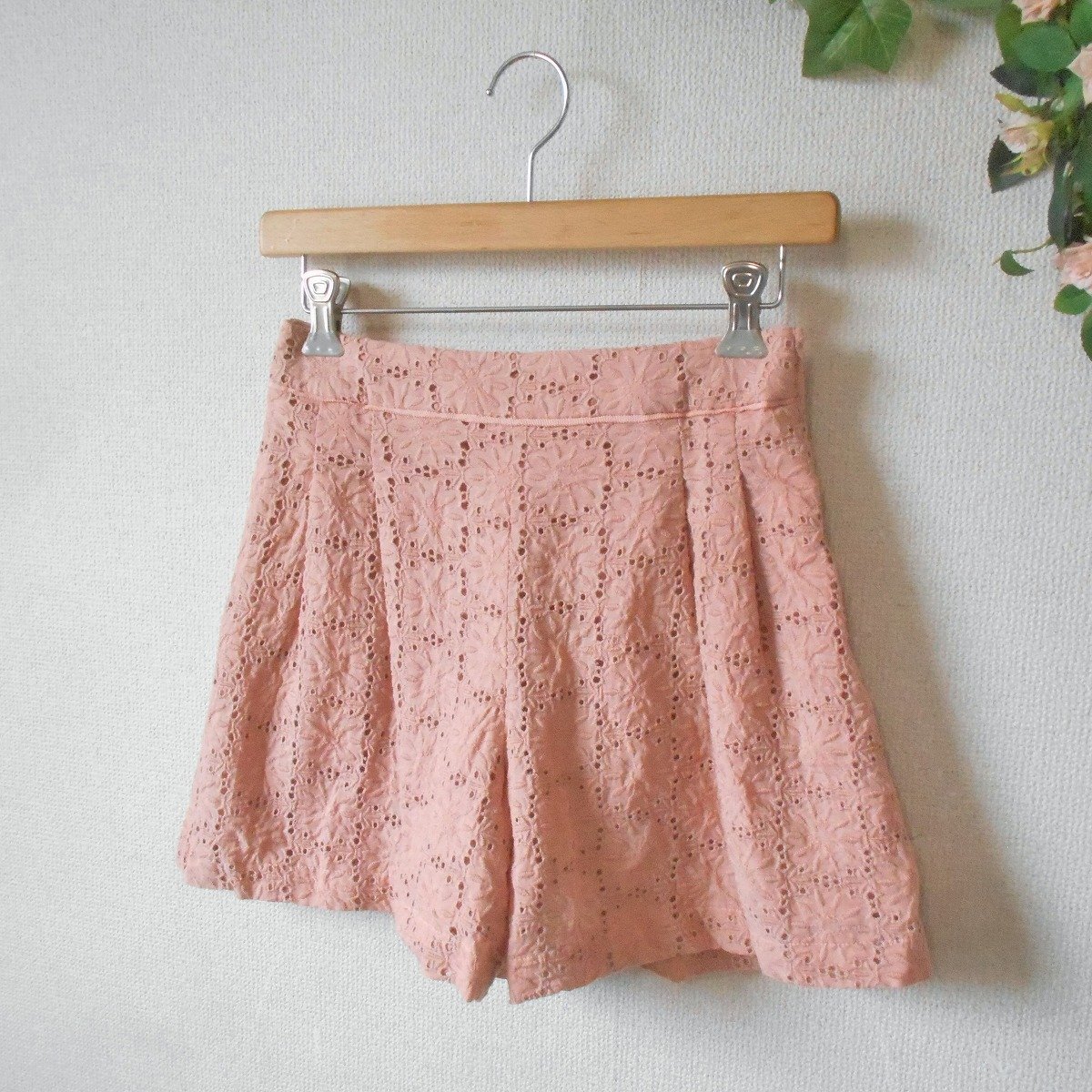 【ポイント】フェルゥのショートパンツになります。お色はピンクベージュで、全体にカットワーク刺繍が施されたとっても可愛い一着です。