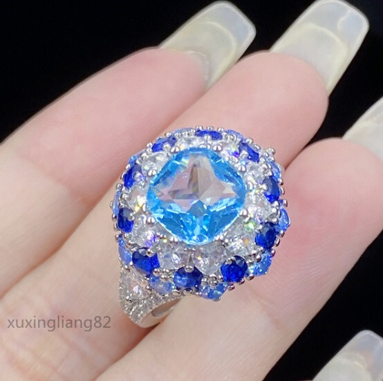 綺麗 指輪 レディース ピカピカ サファイア メッキ加工 ジルコン満々 輝く リング アクセサリー 誕生日 ギフト フリーサイズ