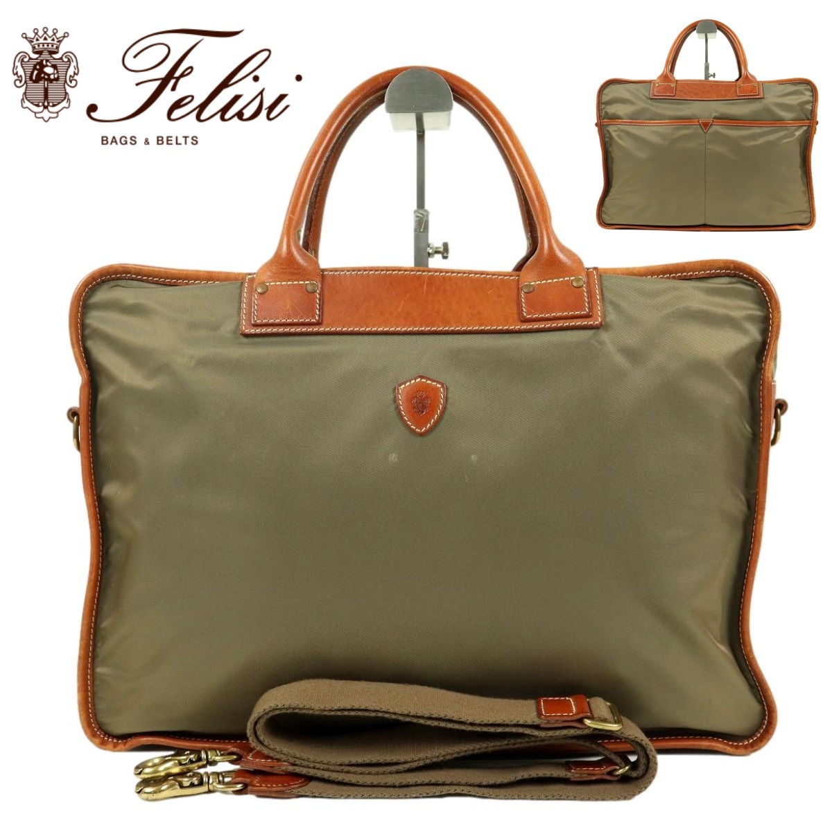 | ブランド名:Felisi 横 :39cm 縦 :30cm マチ:10.5cm 色 :カーキ 状態:フロント部分薄汚れがございますが、比較的綺麗なお品物です(写真でご確認ください) ※状態の確認は慎重に行っておりますが、僅かな薄汚れや、キズ、糸飛びなどがある場合がございます、古着(中古品)にご理解いただける方のみ入札お願いいたします |