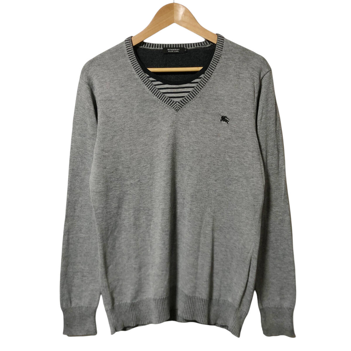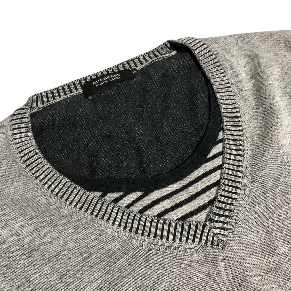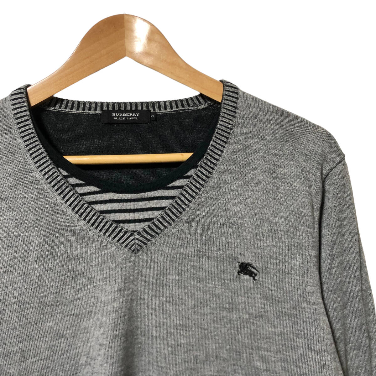 BURBERRY BLACK LABEL バーバリーブラックレーベル ニット セーター コットン ウール 長袖 3 グレー メンズ A34