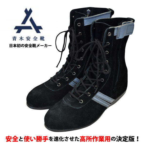 青木安全靴 高所作業靴 安全靴 鳶靴 長編上靴 【 技F-1 】 高所作業用安全靴 27.0cm ブラック×グレー JIS規格 鋼先芯入 サイドファスナー