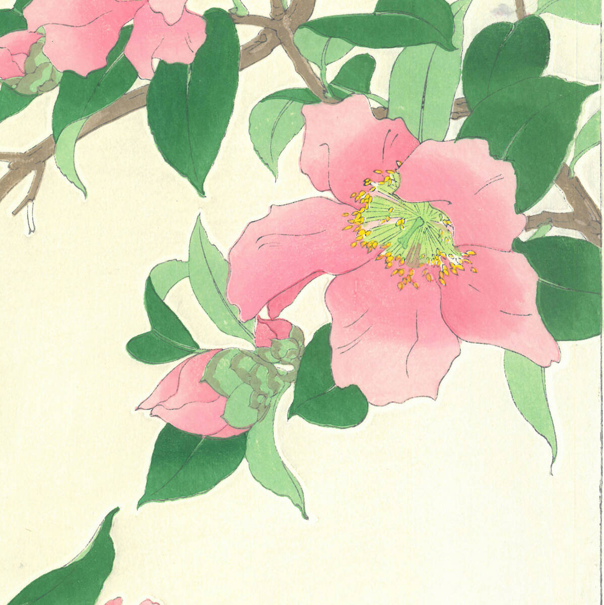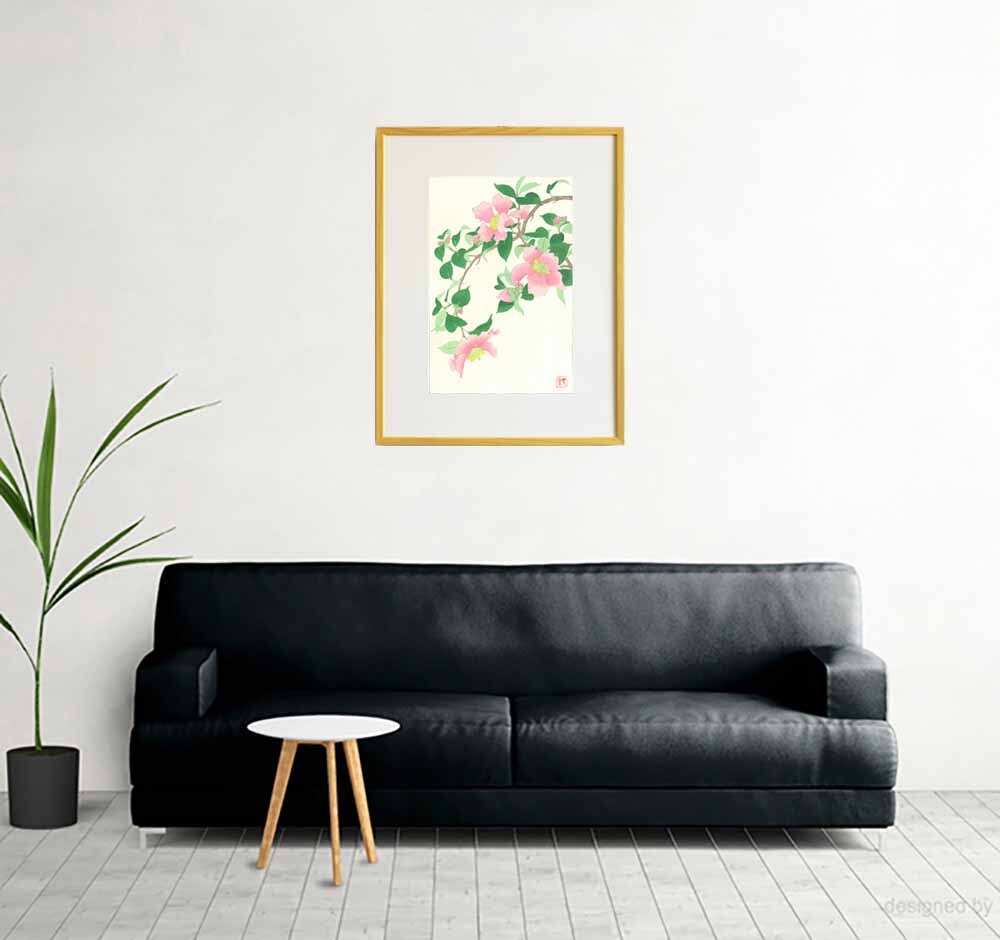 木版画額装    #53 山茶花  Camellia