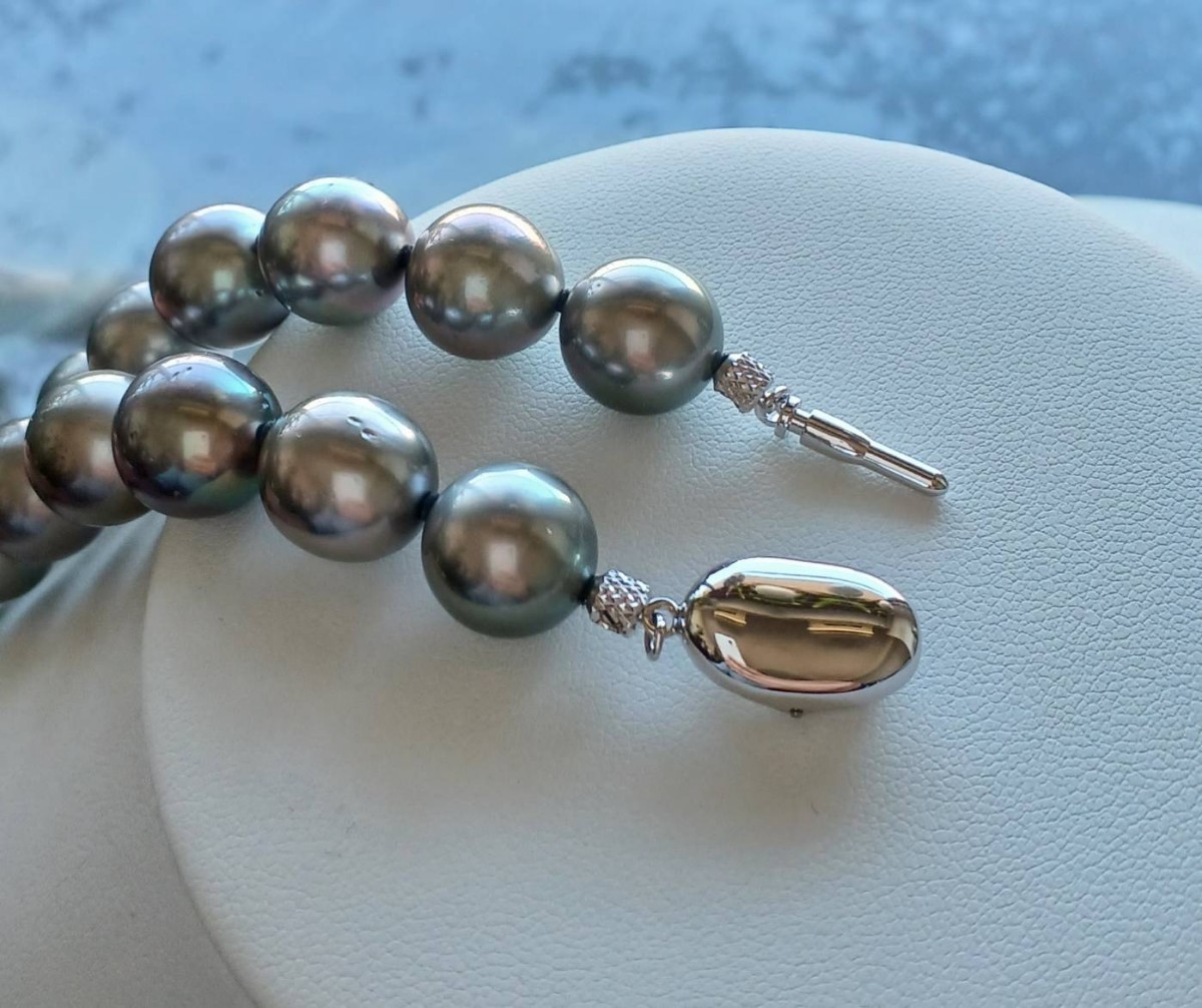 画像には写りきらない、黒蝶真珠特有のエクボや凸凹、シワなどの