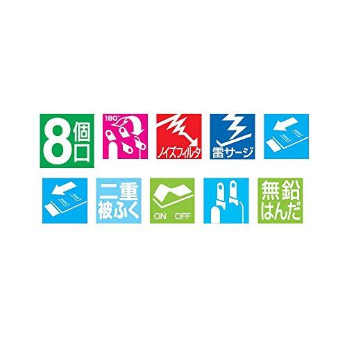 8個口・白い 2m Z6483・・Size:2mStyle:8個口・プラグの両極が同時に差し込まれたときのみ開く安全設計の防塵シャッター。・パイロットランプ付集中スイッチ付。・雷サージを吸収するバリスタ内蔵で、雷による被害を軽減します。・トラッキング火災対策に有効な絶縁キャップ付。・安全性・信頼性を向上させた二重被覆コード。●本体寸法:W215×D40×H27mm ●定格:AC125V・15A・最大1500Wまで ●コンセント:2P8個口 ●プラグ:2Pスイングプラグ ●コード長:2m