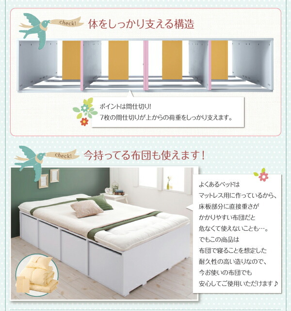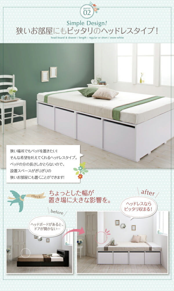 衣装ケースも入る大容量収納ベッド 薄型スタンダードボンネルコイルマットレス付き 引出し2杯 シングル 組立設置付