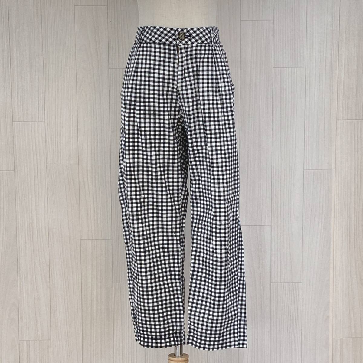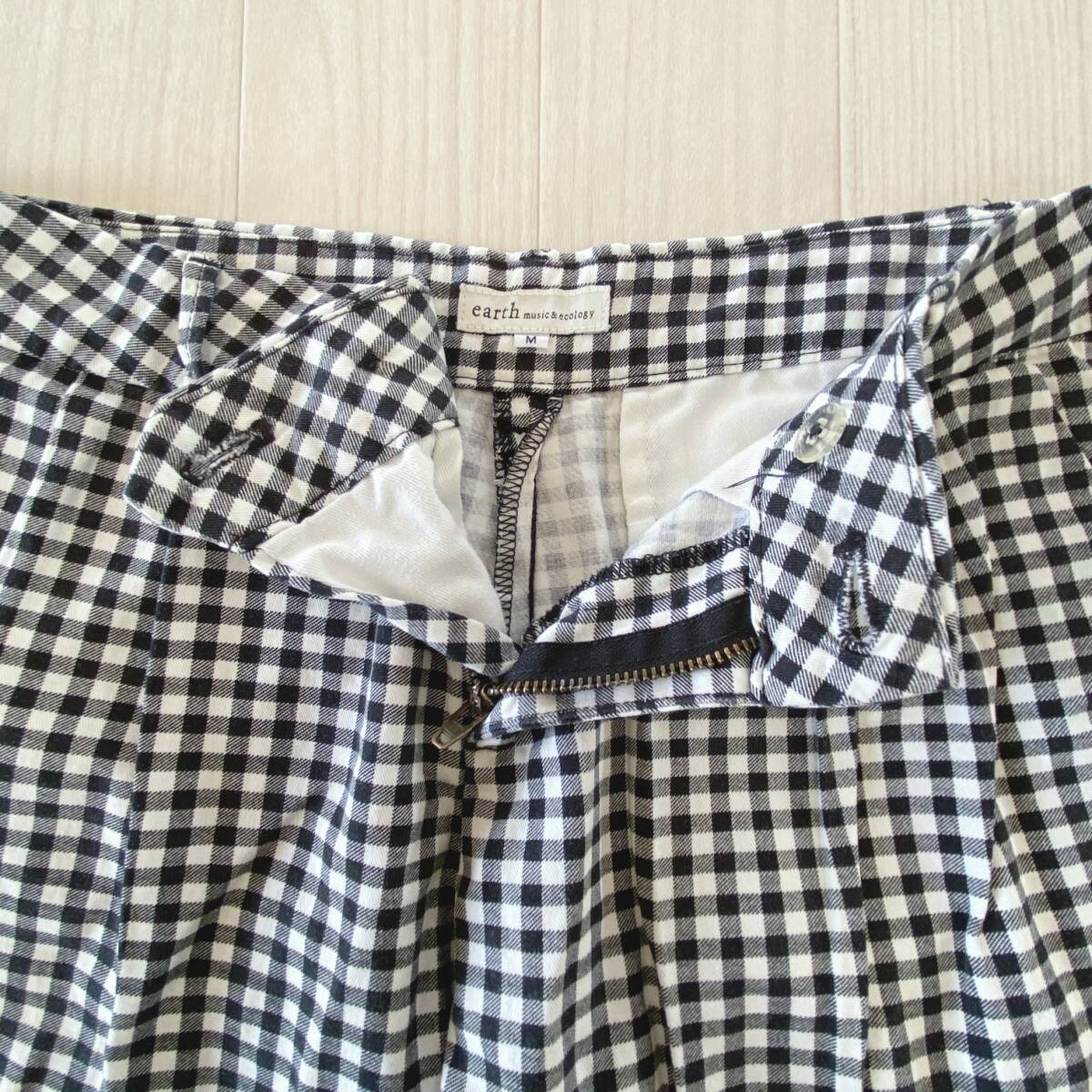 Y1194 美品 earth music&ecology レディースボトムス 膝下丈 薄手 ボタン・チャック サイズM チェック柄 綿素材含 かわいい おしゃれ 春秋