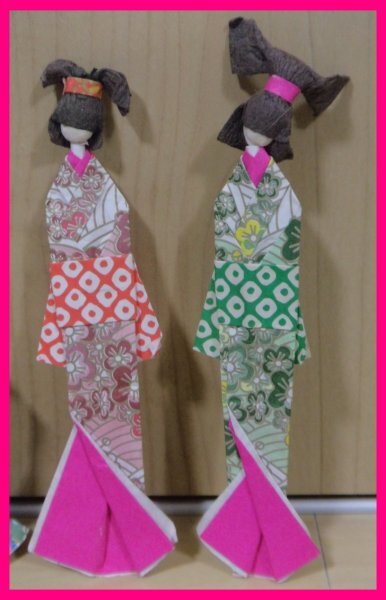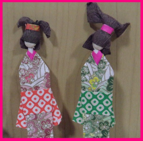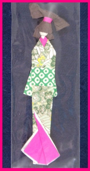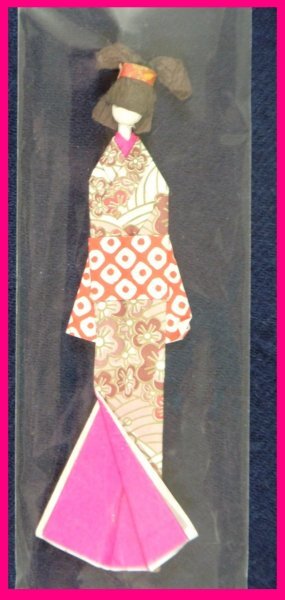 ・写真のような”可愛い ちよがみ・おりがみで織った和風人形のブックマーカー”です。