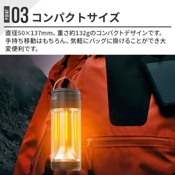 直径50×137mm、重さは132gのコンパクトデザインです。ポケットに入れたりバッグに掛けることができます。ABS+PC素材でできており、IP45防水グレードです。実用的で耐久性があり、簡単に損傷しません。キャンプや釣り、ハイキング、災害時など、さまざまな場面で活用できます。