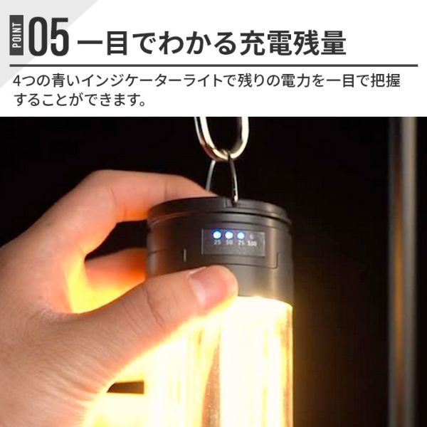 本製品には2000mAHの大容量バッテリーが内蔵されており、最大出力は5Wです。 点灯モードにもよりますが、点灯時間は約7~40時間です。