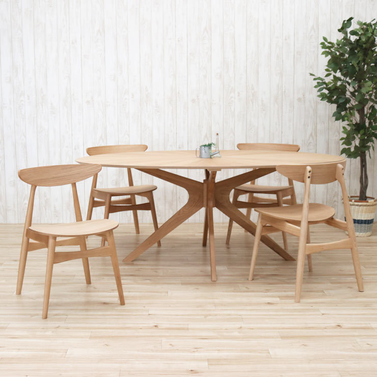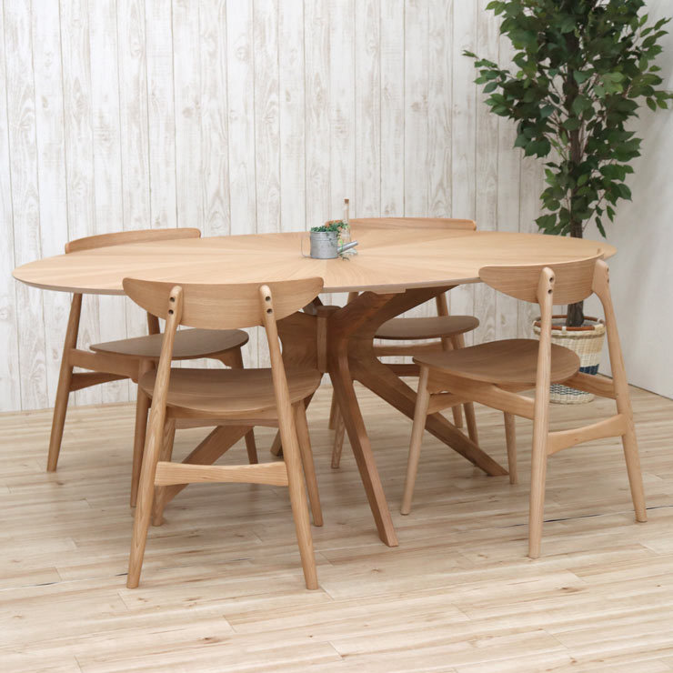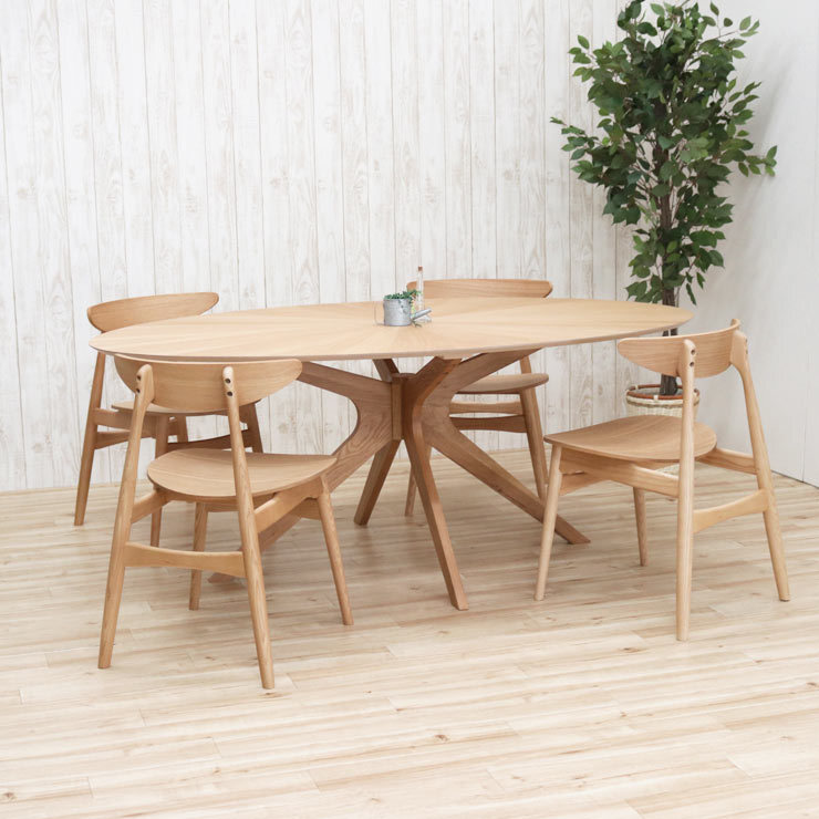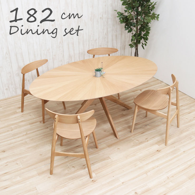幅182cm 楕円テーブル ダイニングセット 5点 板座 ナチュラルオーク色 sbkt182-5-marut351okita 光線張り オーバル 38s-4k so
