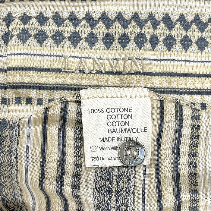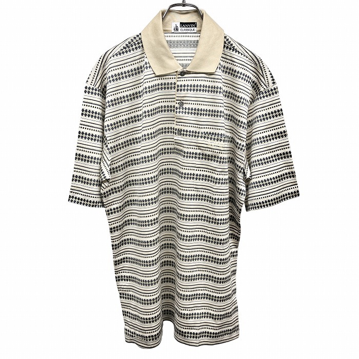 | 商品タイトル | LANVIN CLASSIQUE 若干薄手 ポロシャツ Tシャツ生地 ダイヤ×ボーダー柄 半袖 イタリア製 綿100% M ベージュ ベージュ×紺×白 メンズ |