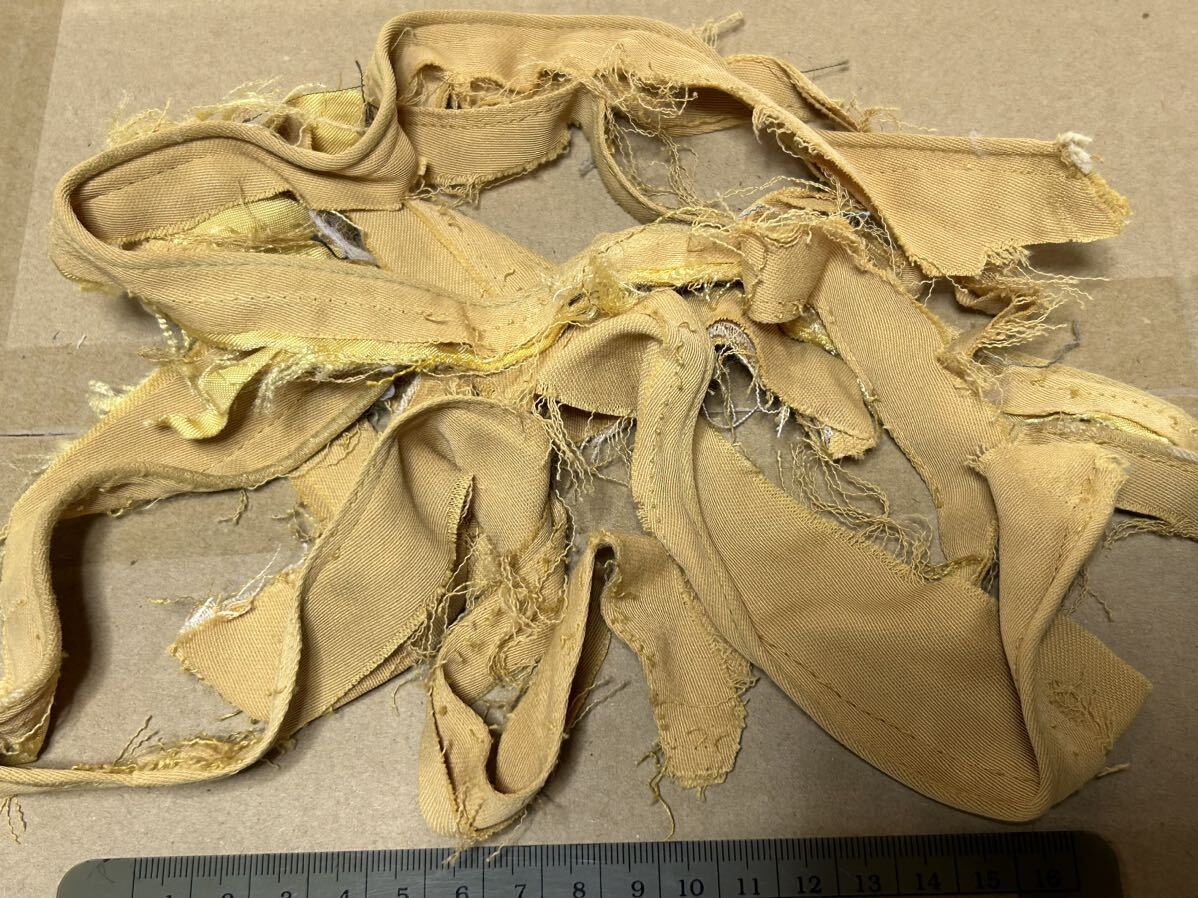 1950年代のレーヨンギャバ素材のハギレです。お色はカラシ色です。生地の厚さが今のものとは違い、高クオリティです♪ヴィンテージ衣料のリペアにいかがですか?
