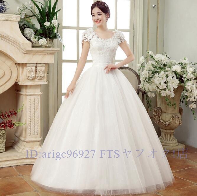 B1859☆新品夏物 ウェディングドレス オフショルダー Aライン体型カバー マタニティ パニエ グローブ ベール付 二次会花嫁 XS~8XL