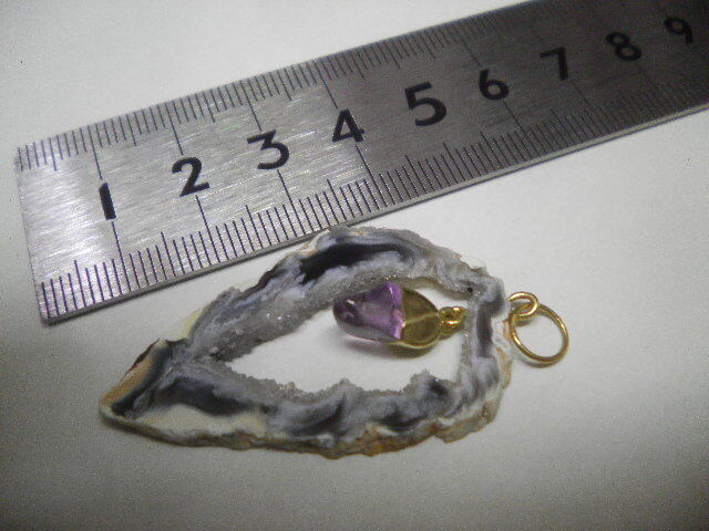 【SALEセール】☆処分品/未使用品☆下げ札なしです(モニター環境により色が写真と少し異なる場合があります) ☆サイズ タテ 約 4、1cm ヨコ 約 2、3cm 厚み 約 0、3cm ※参考程度に(測る場所により多少の誤差が生じます) ☆天然石 メノウ原石☆金具 合金 ※多少の色あせがあります ☆保証書、ケース等の付属品はありません ☆メノウの原石をスライスして、中に紫水晶の原石を付けたペンダントトップです。原石を使用したデザインです ☆素材の性質上、天然石なので色味の違いや傷、欠け、内包物によるくすみ等がございますのでご了承下さい。 ご理解の上、入札をお願い致します。 |