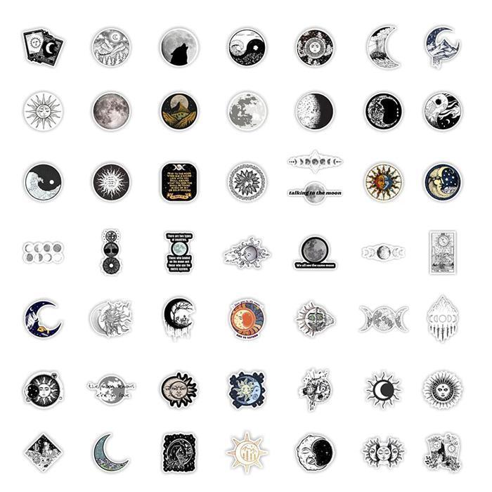 50枚 ステッカー ゴシック モノクロ クール 月 太陽 防水 シール 1185