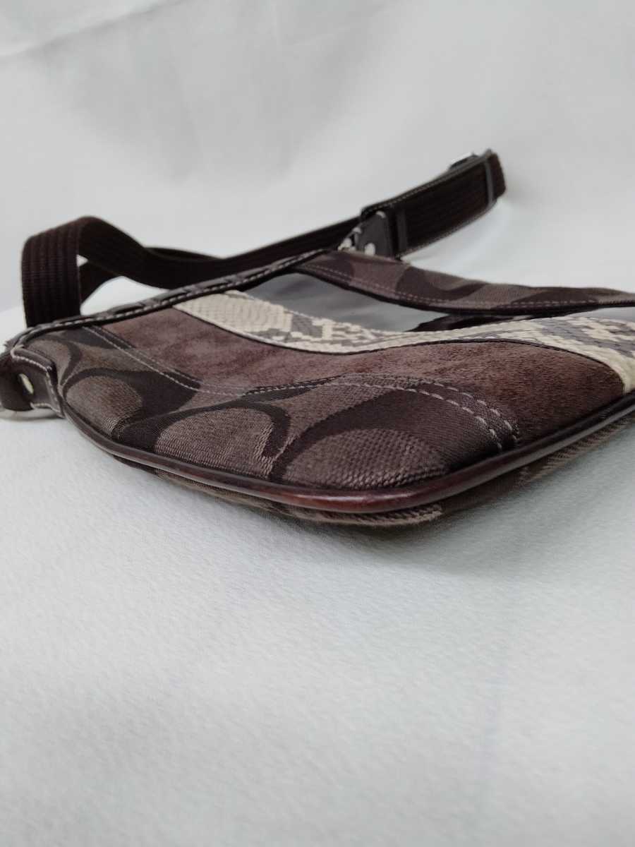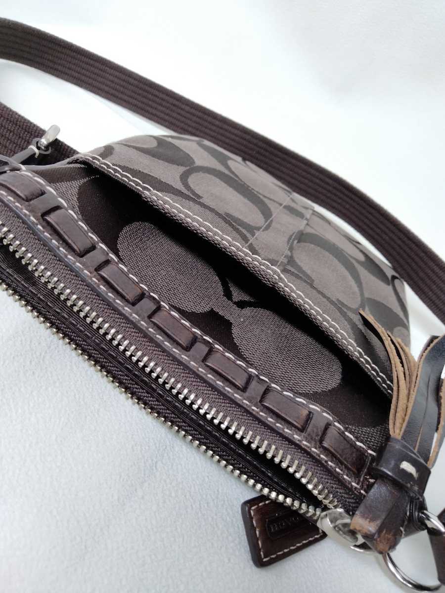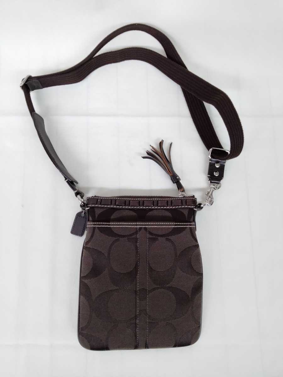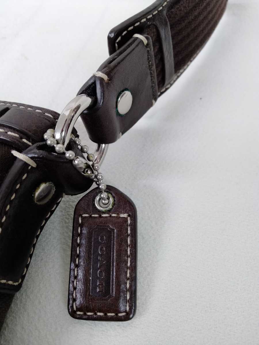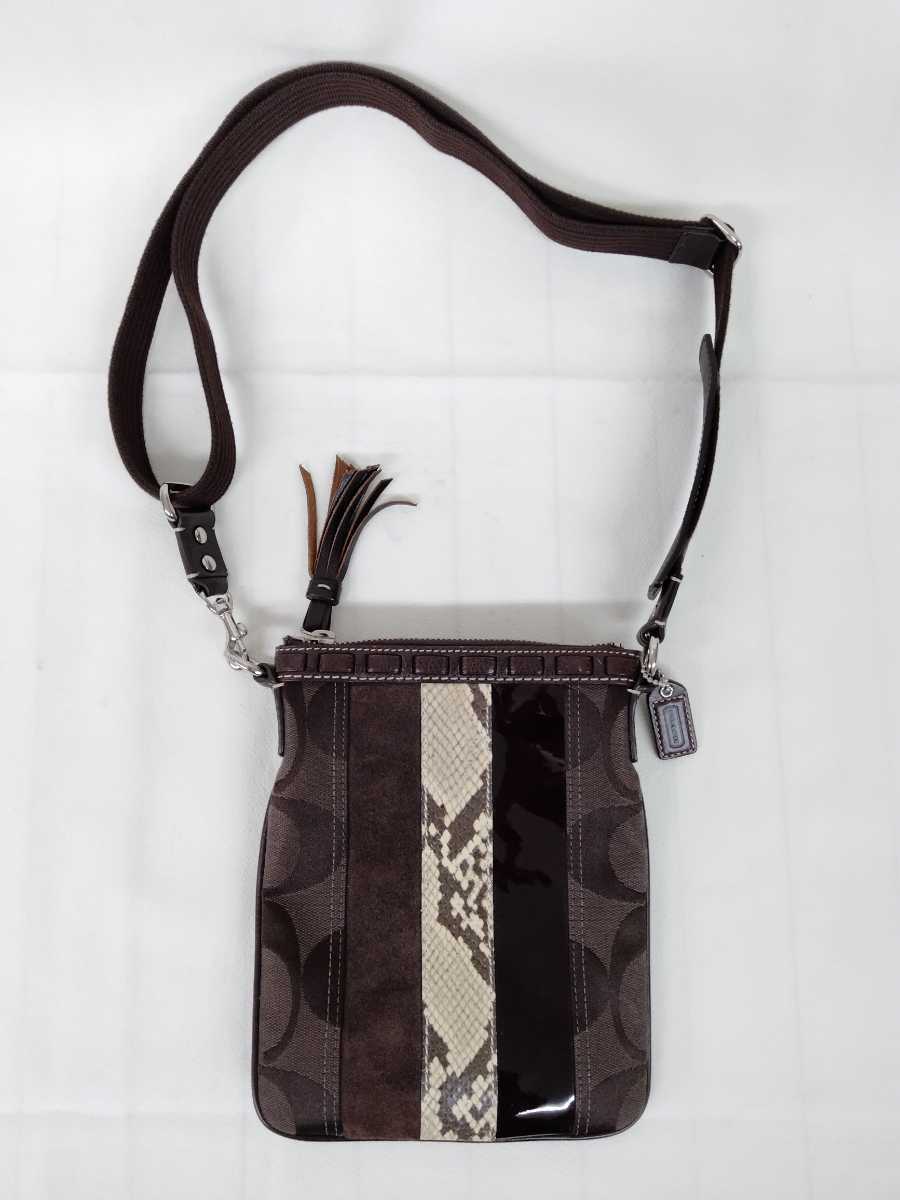 コーチ 10266 ストライプ スイングバッグ ショルダーバッグ ななめ掛け サコッシュ 革 鞄 茶色