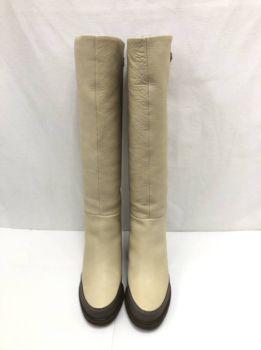RABOKIGOSHI works 本革 レザー ロングブーツ 23cm アイボリー ベージュ系 内側ボア ラボキゴシ 24052702