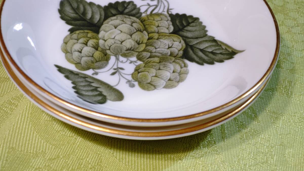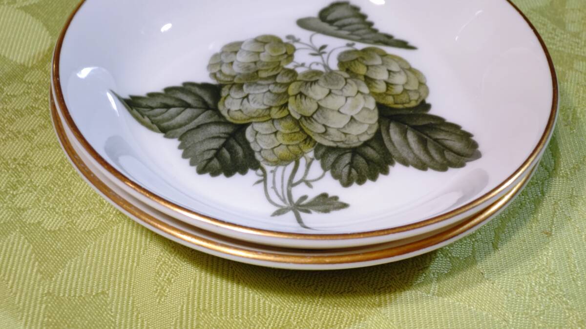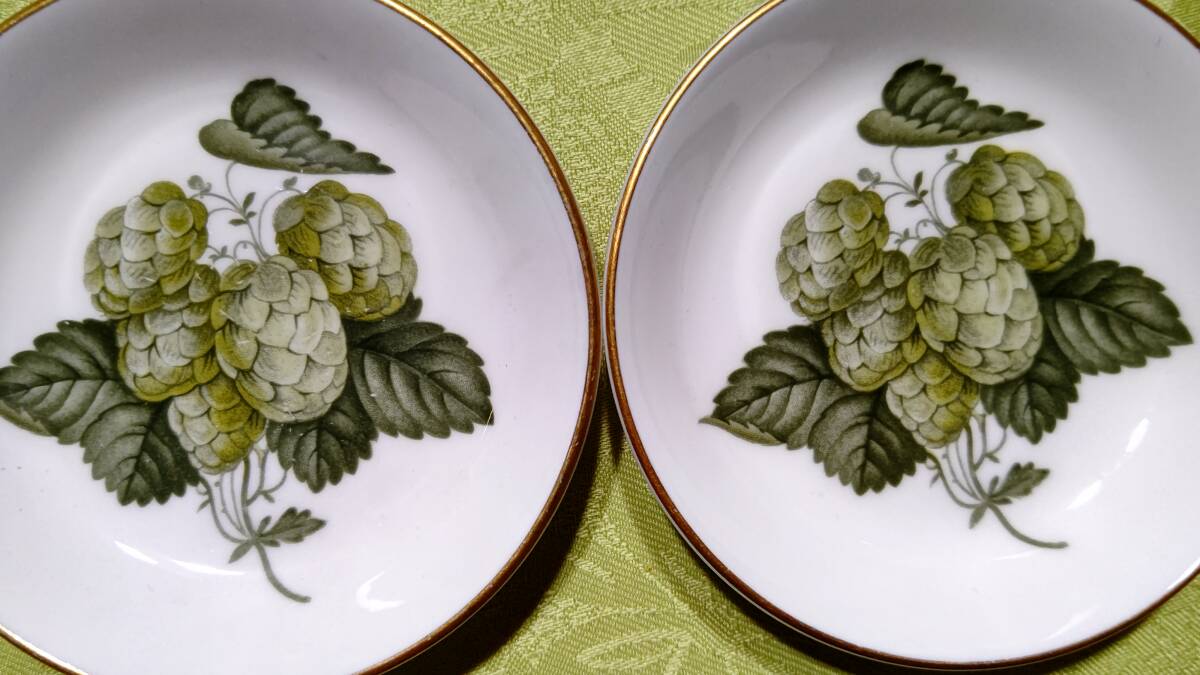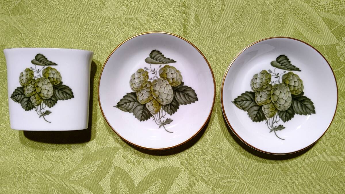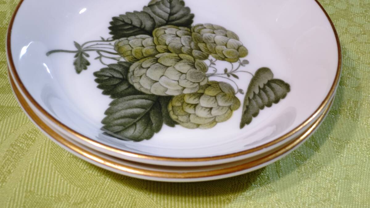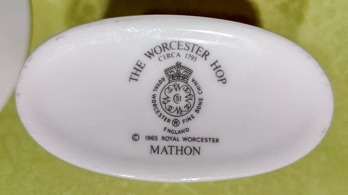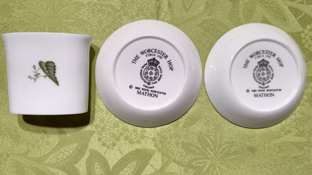 607-5 英国製 ロイヤルウースター THE WORCESTER HOP ホップ柄 MATHON マソン 3点セット(小皿9.8㎝2枚、楊枝入れミニ花瓶7.2×3.7×6.3㎝1個)