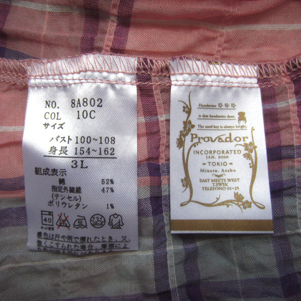 美品 麻布プロバドール★ 大きいサイズ 薄手シャツワンピース 3L