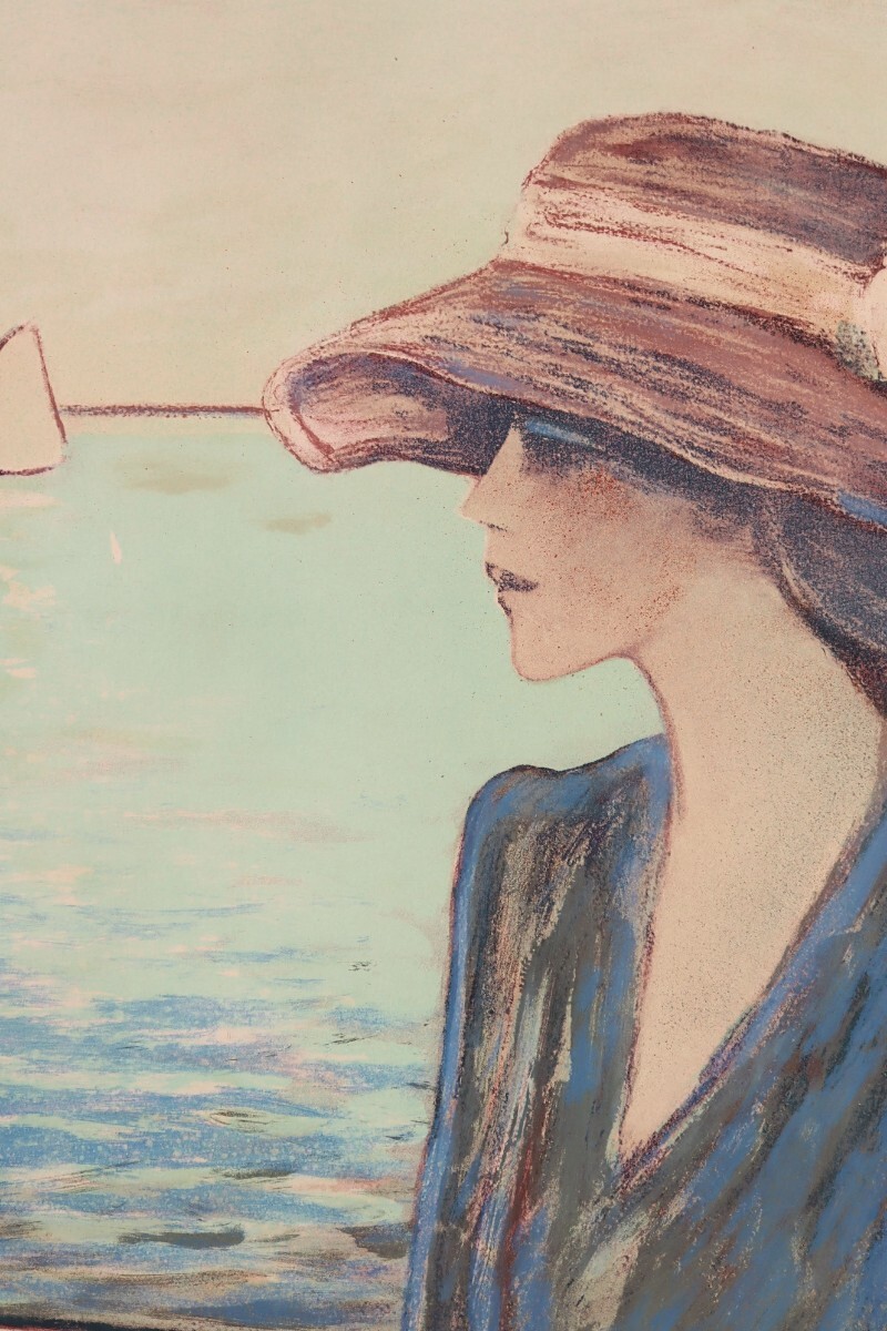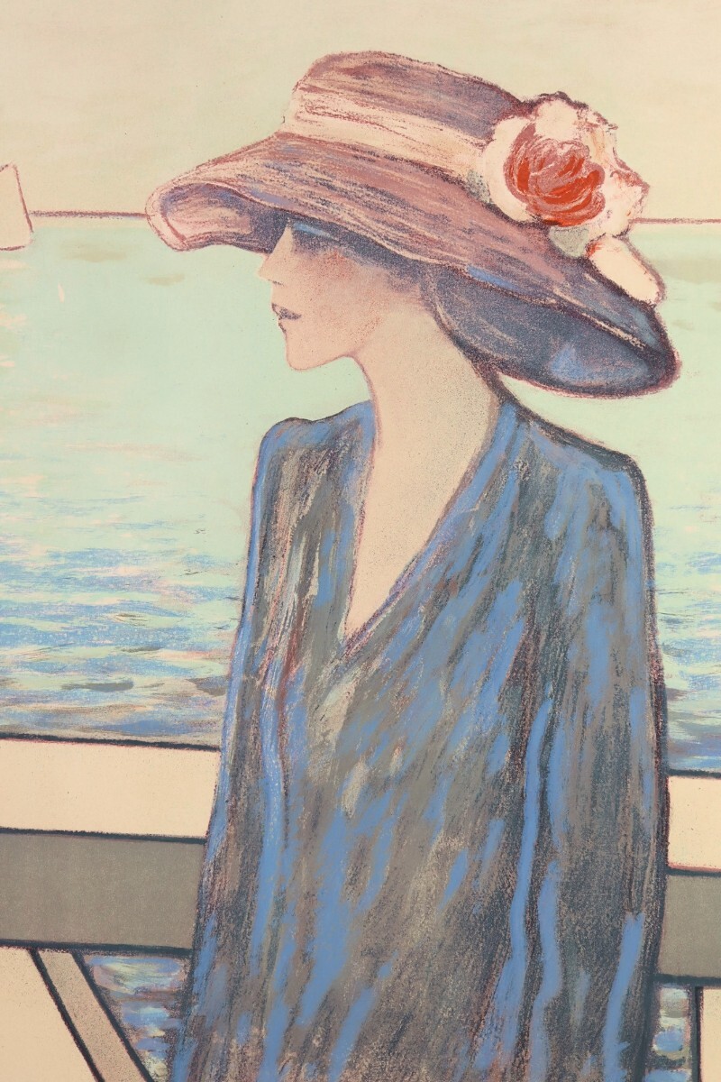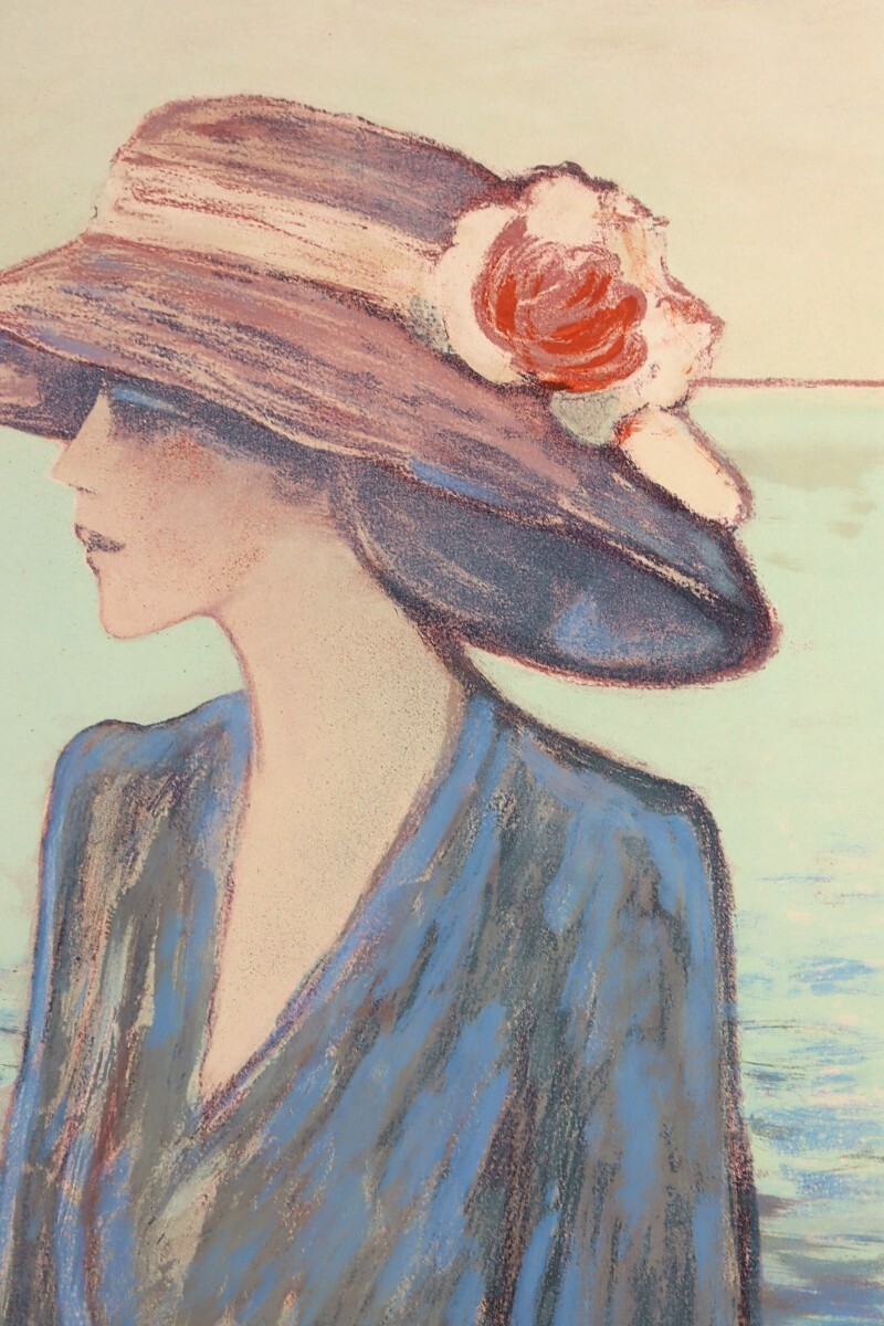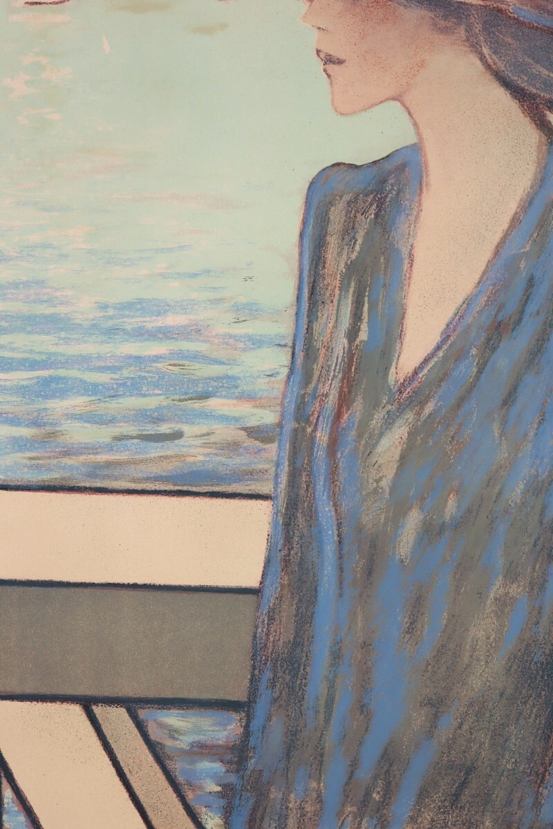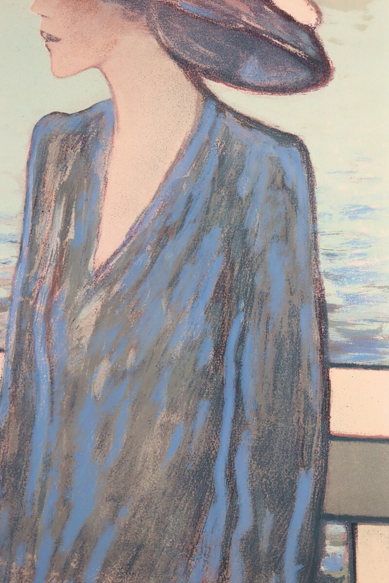 真作 ジャン=ピエール・カシニョール 大判リトグラフ「海の前のナタリー」画 49×68cm 優美な色彩とエレガントな雰囲気 物憂げな表情 9137