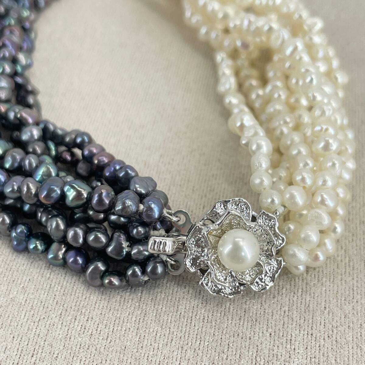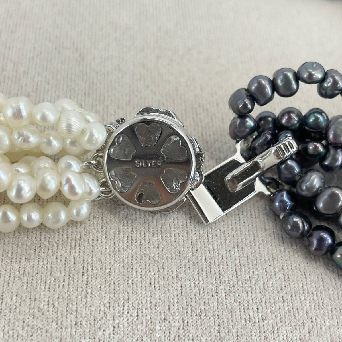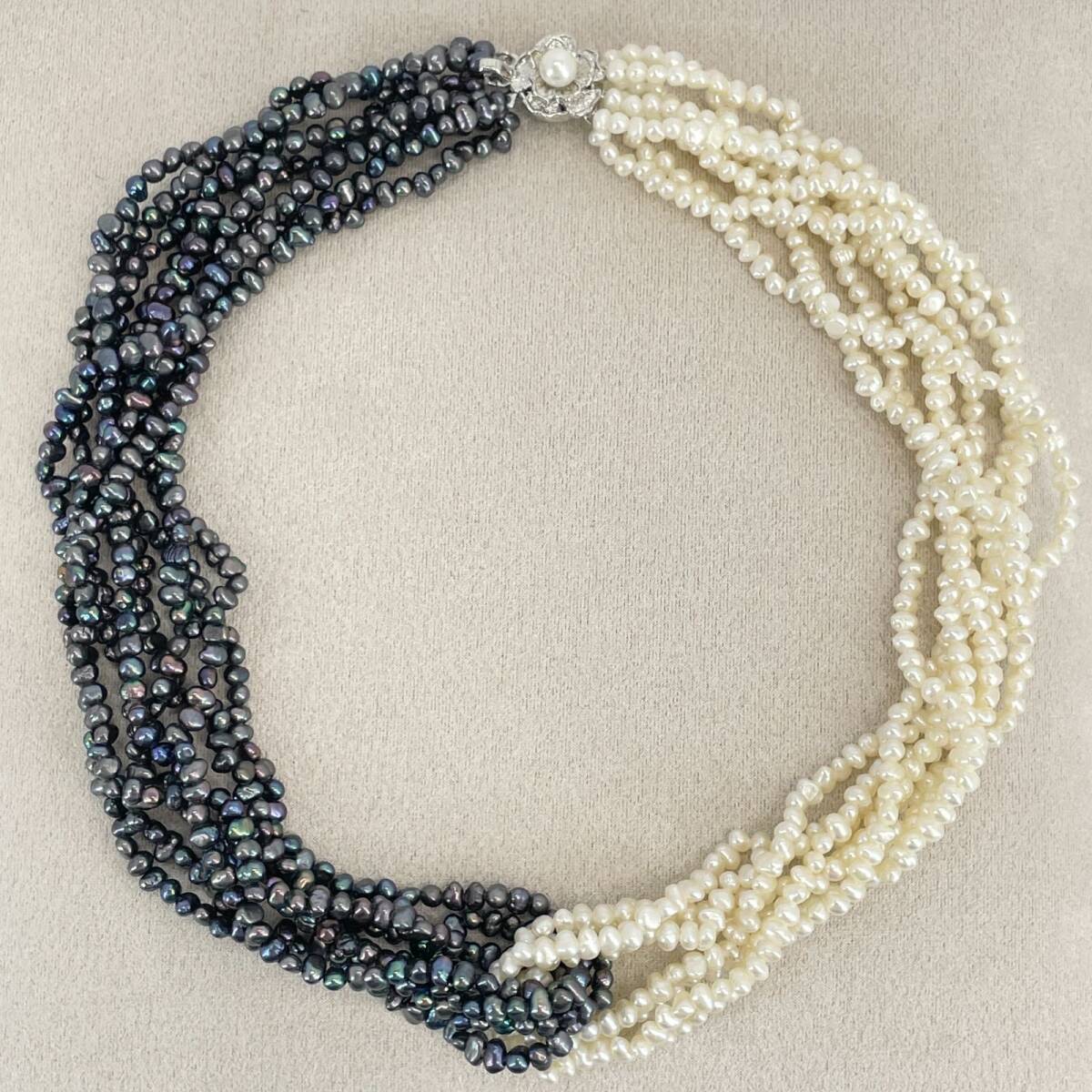 シルバー 淡水パール バイカラー ホワイト×ブラック 8連 ネックレス /24-702