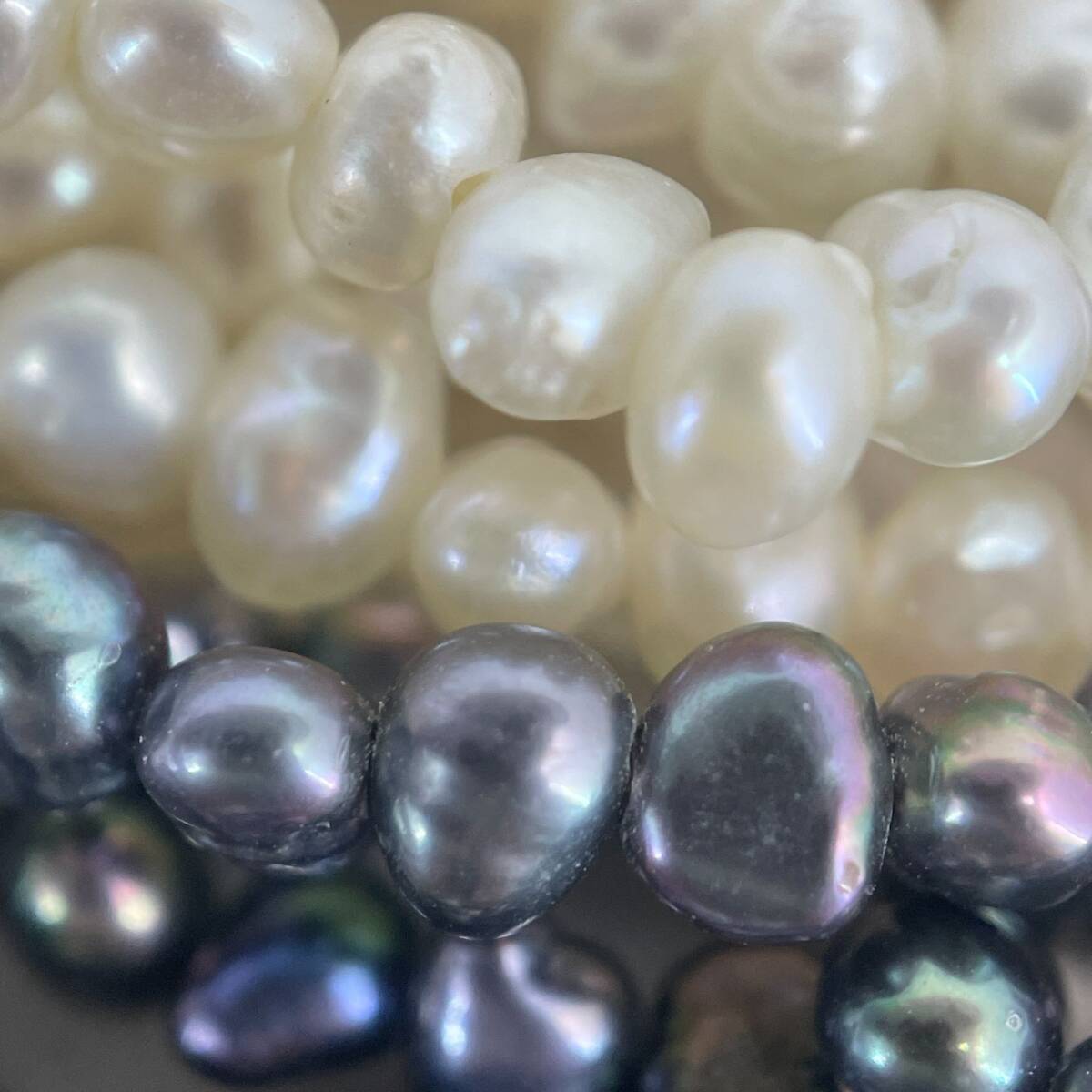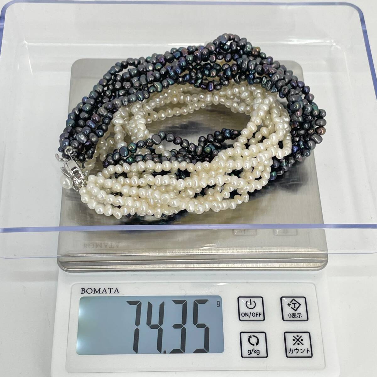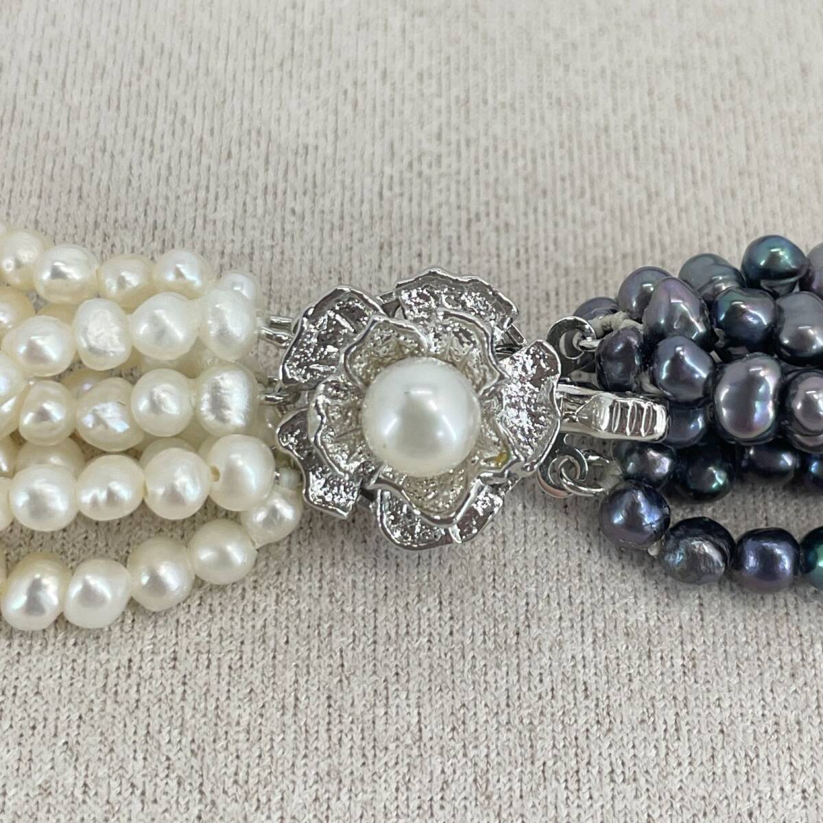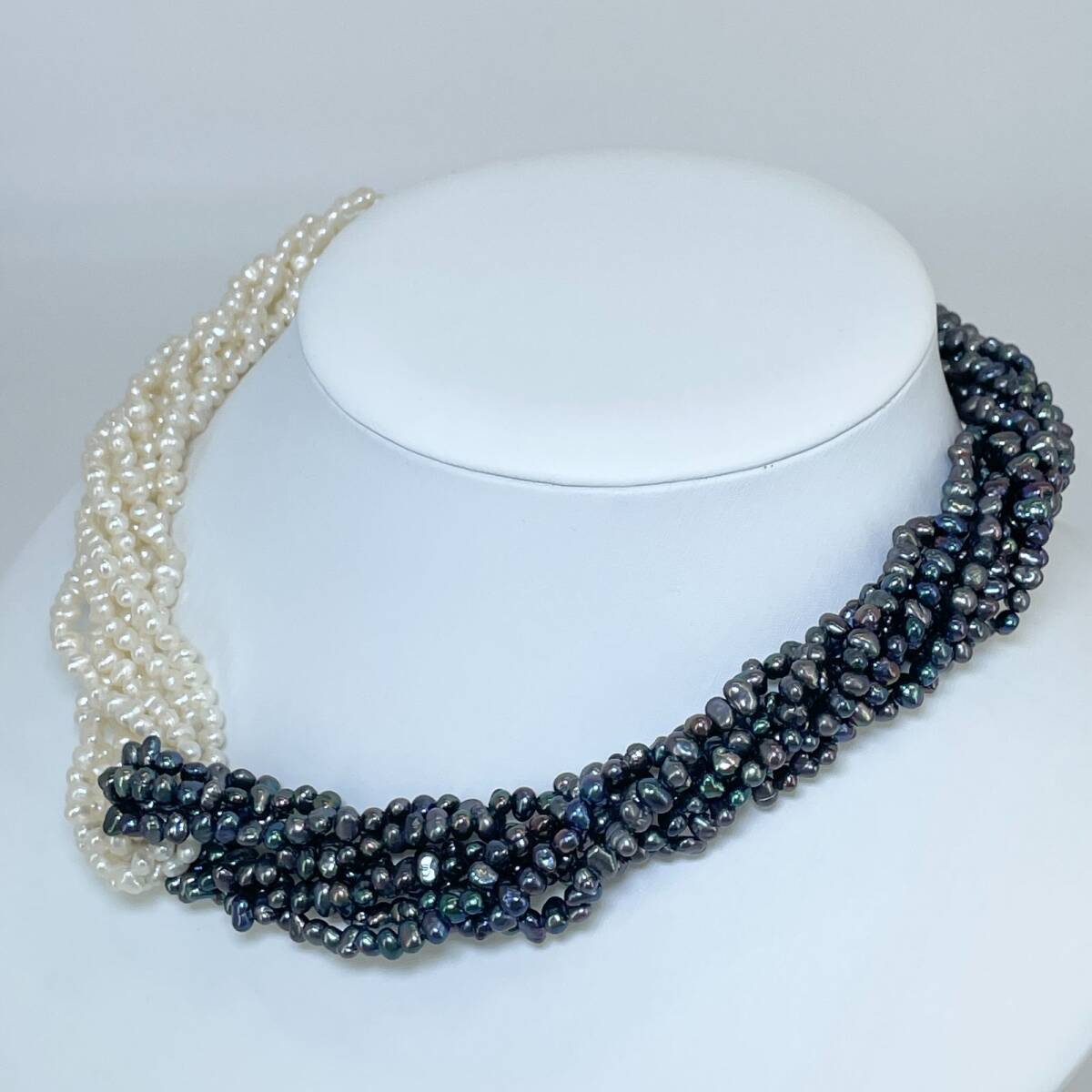 シルバー 淡水パール バイカラー ホワイト×ブラック 8連 ネックレス /24-702