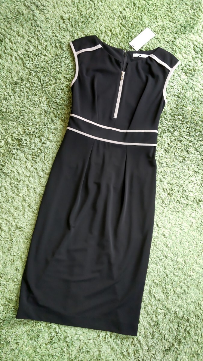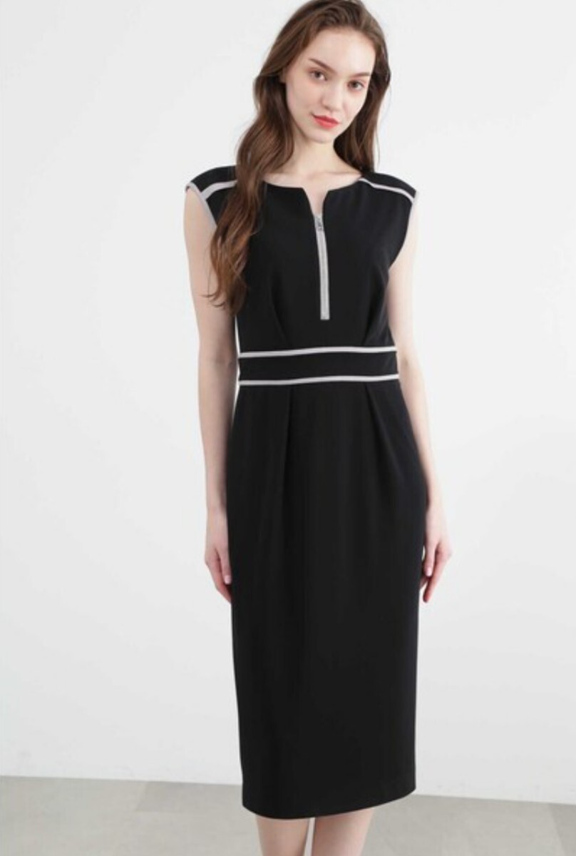 胸元のファスナーとパイピングのバイカラーが素敵なワンピースです