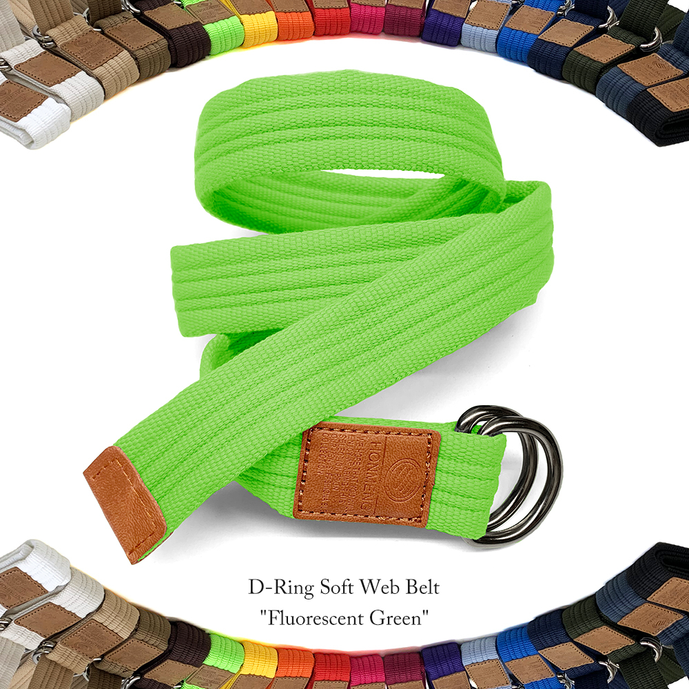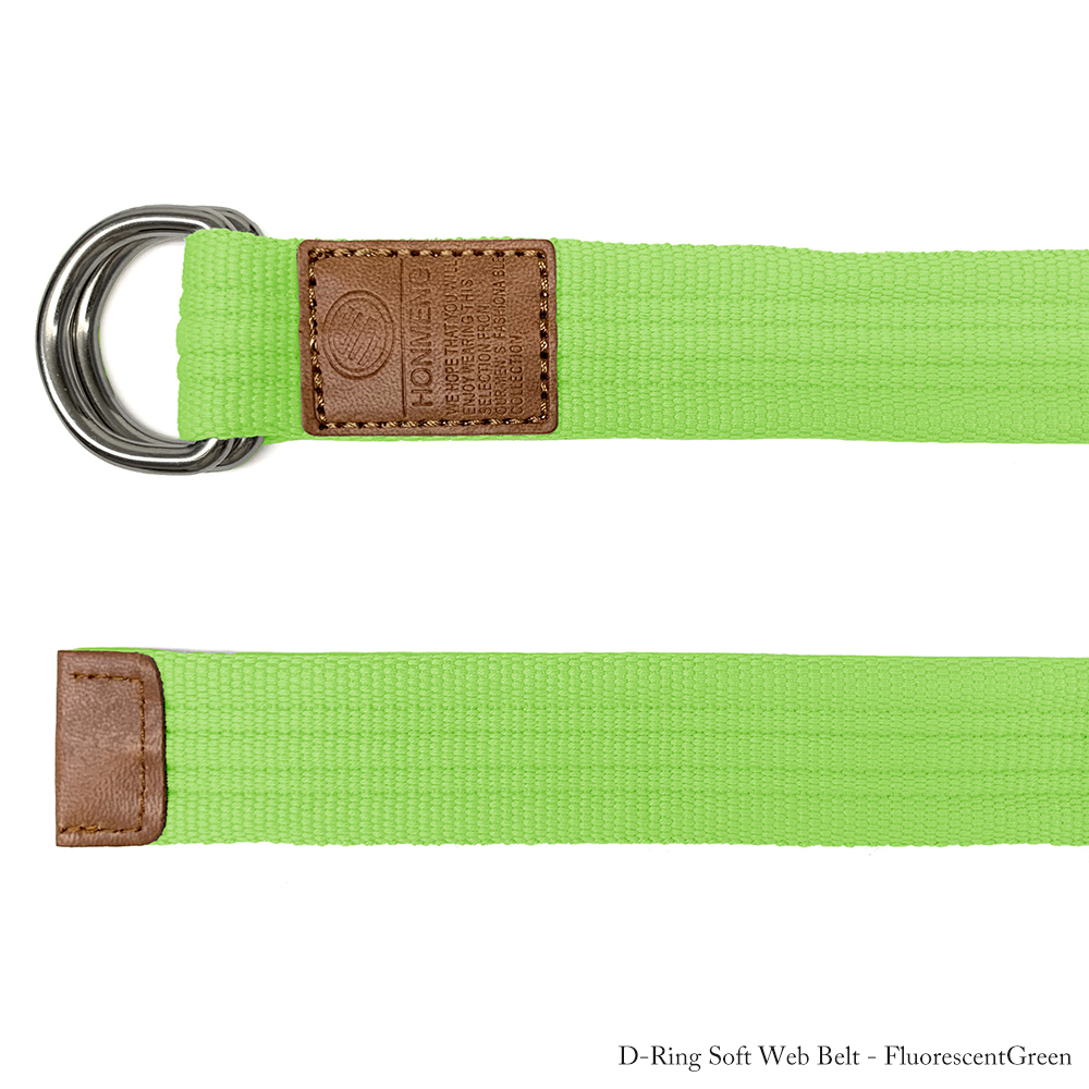 ワンサイズのダブルリングベルト。 表地はキャンバス生地で、ベルトの芯の部分に化繊系の生地が使われます。 ベルトの中心部分に4本のステッチが縫込まれ、中心部分(約1.5cm)はやや硬めで両端は少し柔らかくフカフカしてます。 リング部分は直径約5mmのしっかりした金具で、レザー部分は合皮になります。 ダブルリングベルトですのでベルト穴など気にせずに便利に使用出来、老若男女問わずに使えるベルトです。 MADE IN CHINA 【ネコポスご利用の際の注意点】 ・銀行,かんたん決済等ご入金確認後の発送(代金引換は不可) ・代金引換は不可、代金引換をご希望の場合は宅急便送料+代引手数料になります。 ・ご自宅のポスト投函配送ですので日時指定不可 ・荷物の紛失・破損に対する引受限度額は3,000円となります。(ヤマト運輸による補償です。) ・万が一の不着破損等でも、ヤマト運輸との連絡のみで、当店は一切の補償クレームはお受けできません。 ・商品発送後お荷物番号をお知らせしますので、クロネコヤマトにてお荷物追跡可能です。 ■サイズ表: 全長: 115cm(金具含まず) ベルト幅:3.5cm ■カラー Fluorescent Green |
