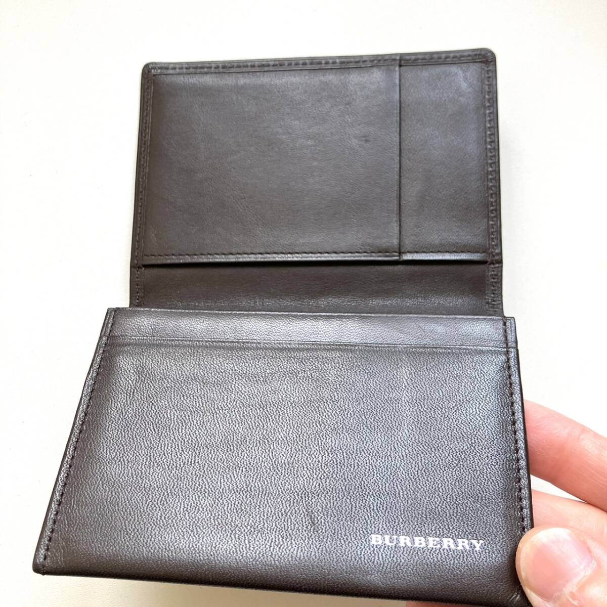 商品説明 | ご覧いただき誠にありがとうございます。 バーバリー Burberry 名刺入れ になります。 色はダークブラウンです。 革は柔らかくて手に馴染みます。 開けると片側にマチがあるので名刺入れになります。 仕様 縦8cm、横11cm、厚さ1cm、カード入れ×4 |