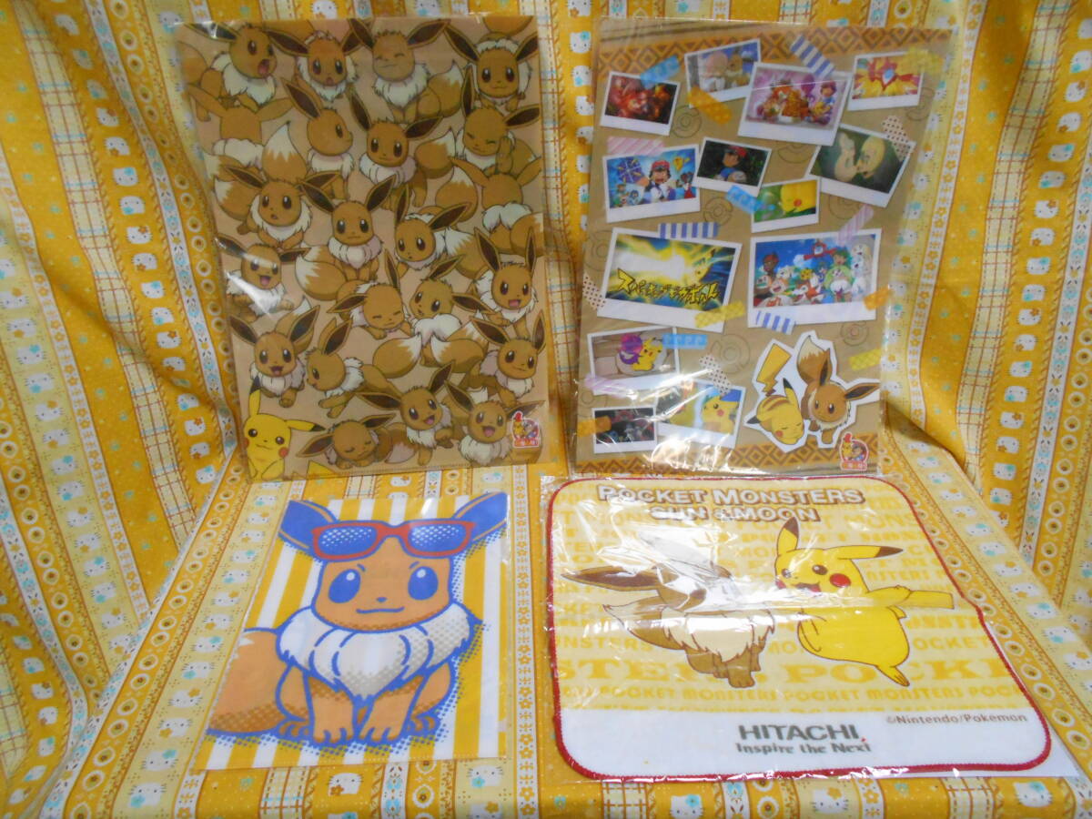 ♪ポケモン新品未開封ポケットモンスターイーブイクリアファイル2種&ミニクリアファイルサングラス&HITACHI日立ハンドタオルピカチュウ