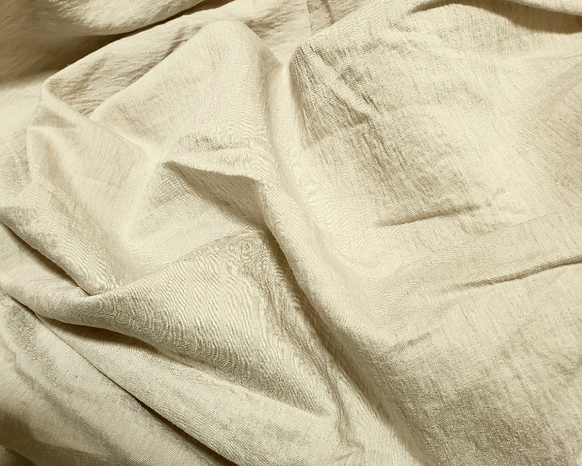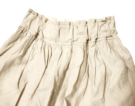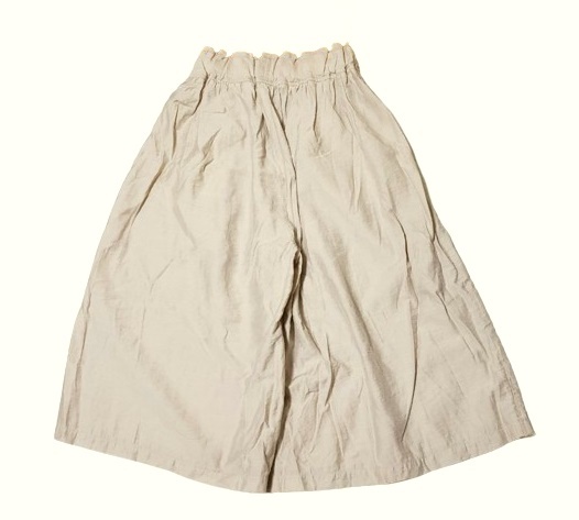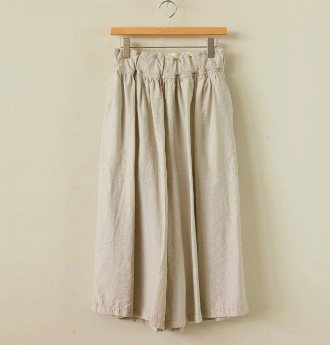 サイトより...ふわっとした膨らみのあるワイドシルエット。経糸にナイロン20dの分繊糸、緯糸にレーヨン・リネンの混紡糸を使用したシャンブレーです。