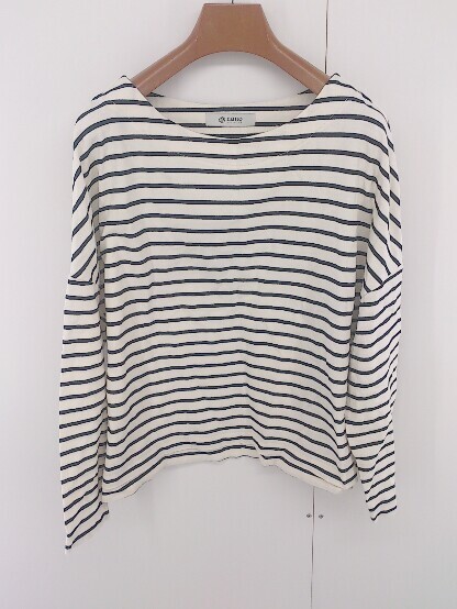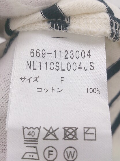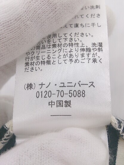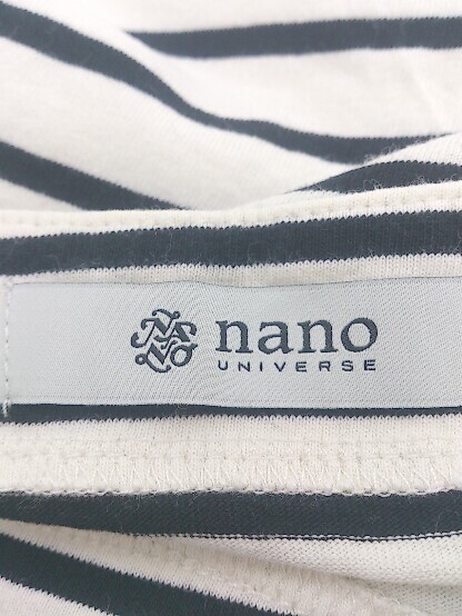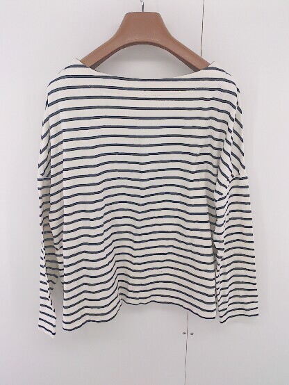 ◇ nano universe ボーダー ボートネック 長袖 Tシャツ カットソー サイズF ホワイト系 ブラック レディース E