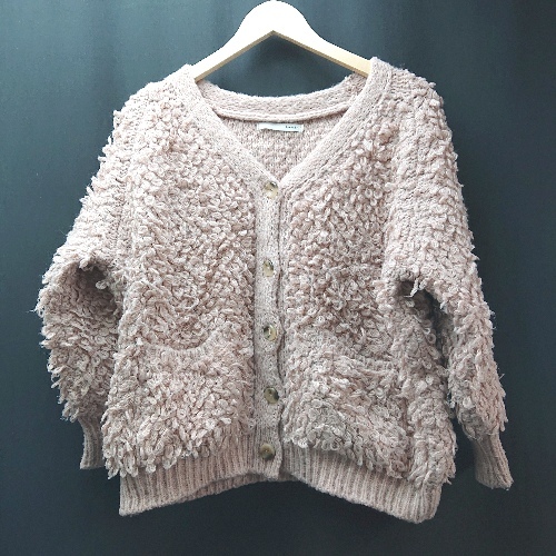 ◇ by muni:r バイムニール アクリル混合生地 もこもこ ふわふわ 冬物 長袖 カーディガン サイズF ピンク レディース E