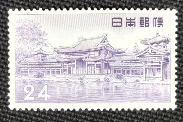 [24060718] 普通切手【第2次動植物・第1次円単位】単片「平等院鳳凰堂」24円 1957年発行 美品*