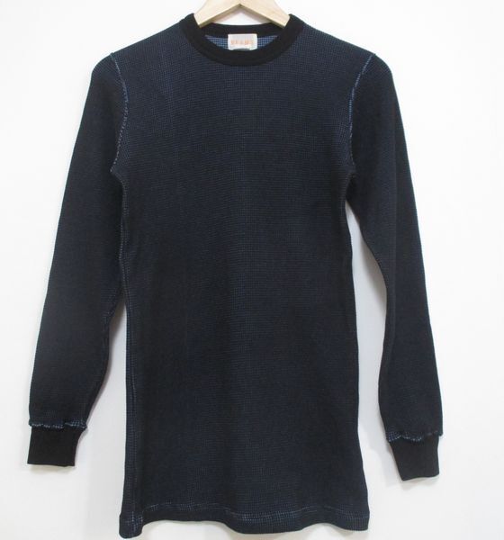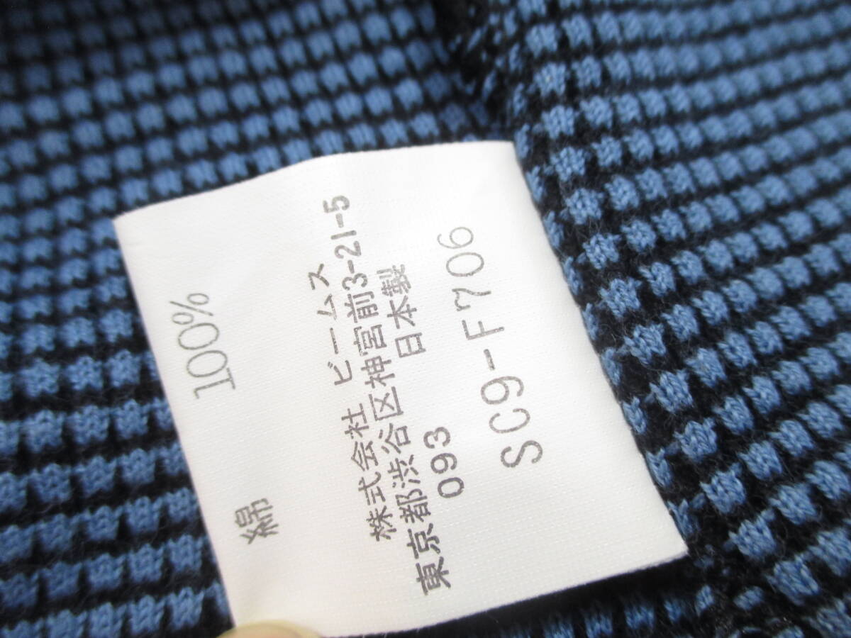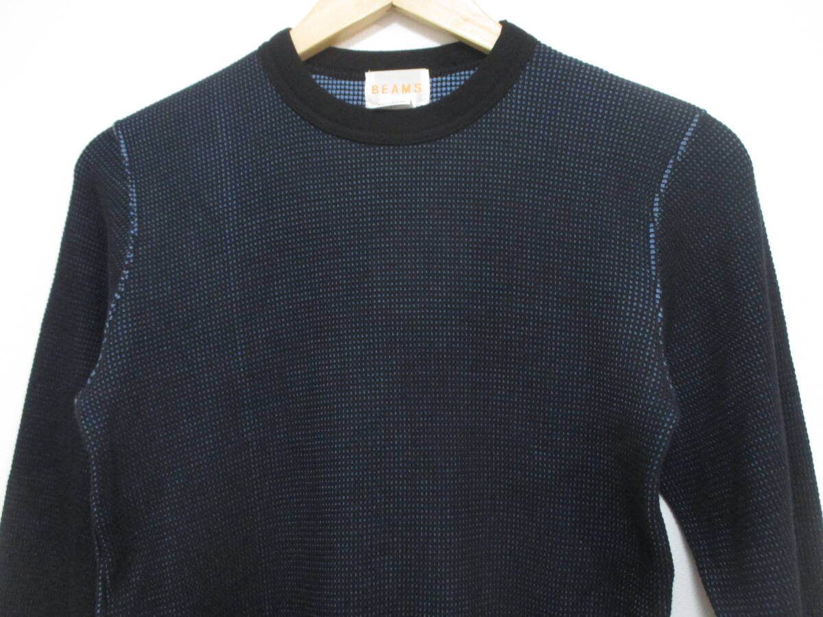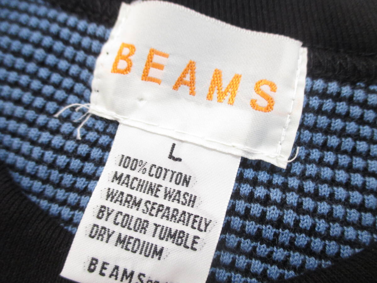 【BEAMS】ビームス◆長袖 サーマルシャツ(黒×青) 日本製◆L