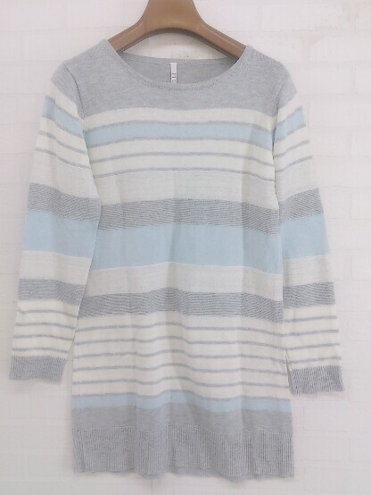 ◇ ELLE エル ボーダー 長袖 ミニ ニット ワンピース サイズ38 ホワイト グレー ライトブルー系 レディース P