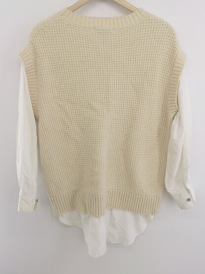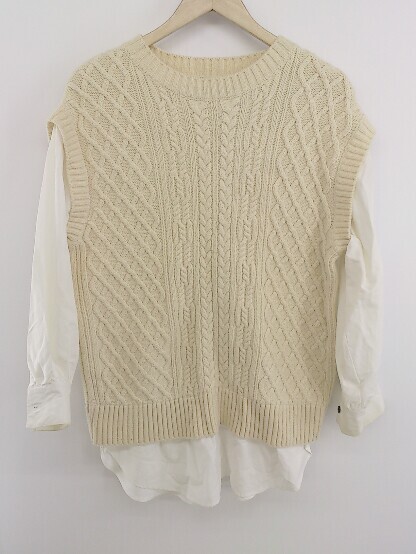 ◇ ROSE BUD ローズバッド 重ね着風 長袖 ニット プルオーバー サイズF アイボリー ホワイト系 レディース E