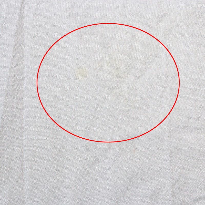 首元に汚れ・フロント下部、後ろ首付近、右袖にシミが見受けられます