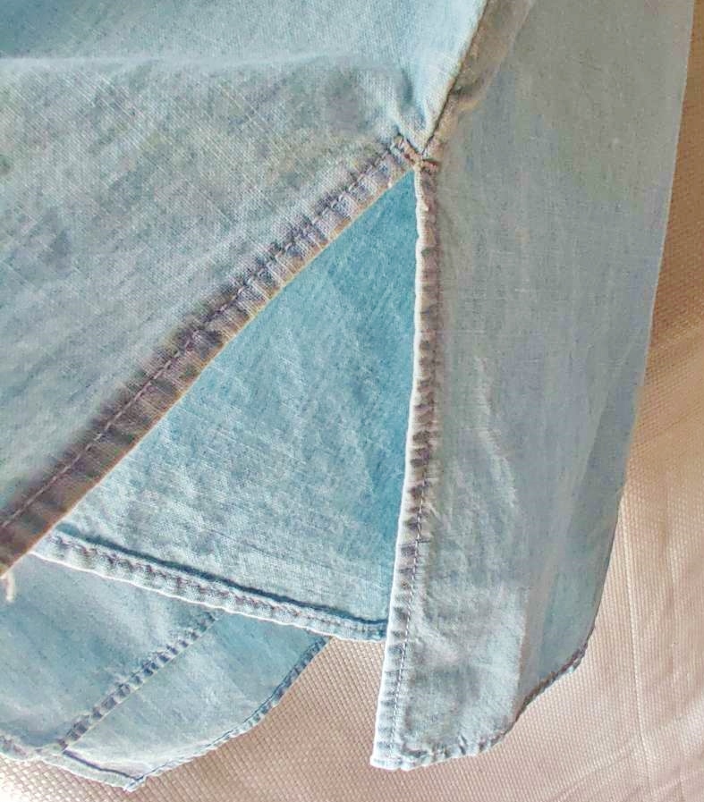 前丈より後ろが長く、裾脇にはスリットもあり。