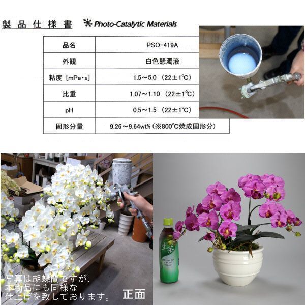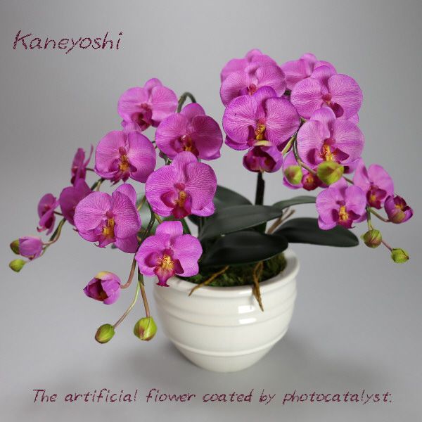 胡蝶蘭小輪の造花に光触媒加工が施してあります。