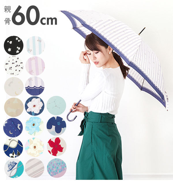 | サイズ | ・Mボーダー、星座、Fプリント、リボンSt、ペイズリー、Mキャッツ [親骨の長さ]約60cm [直径]約100cm [全長]約85.5cm [持ち手]約19cm ・裾ハート [親骨の長さ]約60cm [直径]約102cm [全長]約91cm [持ち手]約21cm ・ブルームネイビー、ブルームベージュ、マリンスカーフグリーン [親骨の長さ]約60cm [直径]約102cm [全長]約88.5cm [持ち手]約21cm ・ブルームパープル、マリンスカーフネイビー [親骨の長さ]約60cm [直径]約96cm [全長]約88.5cm [持ち手]約21cm ・プチフラワー [親骨の長さ]約60cm [直径]約96cm [全長]約84cm [持ち手]約19cm ※カラーによってサイズが異なります。 ※サイズは当店平置き実寸サイズです。実際の商品とは多少の誤差が生じる場合がございます。あらかじめご了承ください。 |