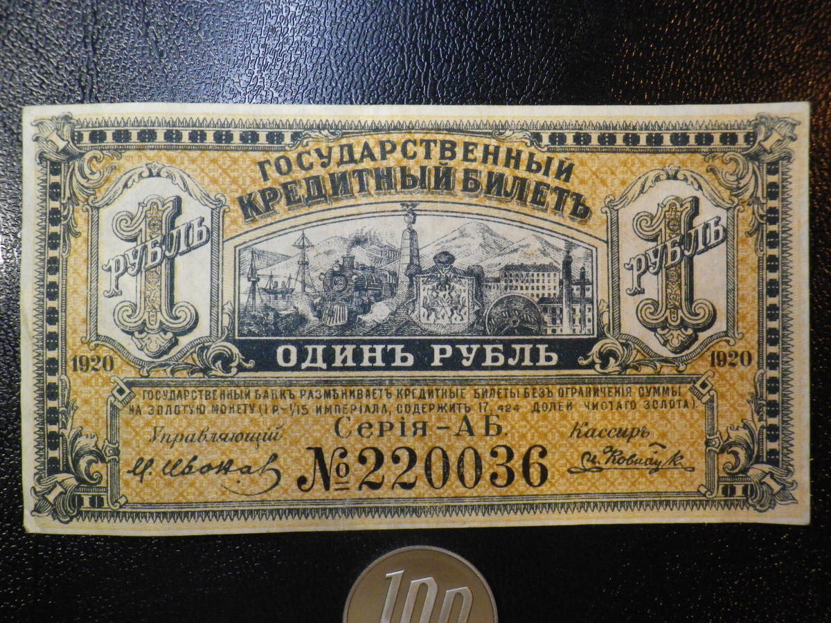 ロシア 1918~1920年 極東臨時政府 1ルーブル 極美品++