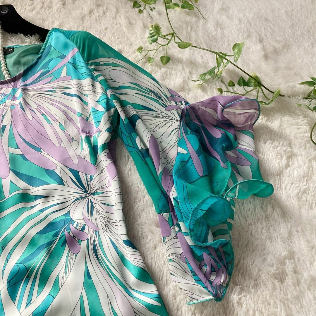 袖の部分はシフォン素材で透け感があり、フレア+フリルでボリュームのあり凝ったデザインになっています。