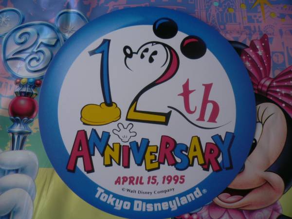 即決♪新品未使用♪東京ディズニーランド25周年記念 12周年缶バッジポストカード♪TDR TDL TDS♪