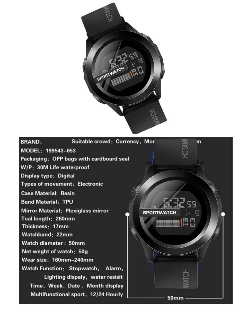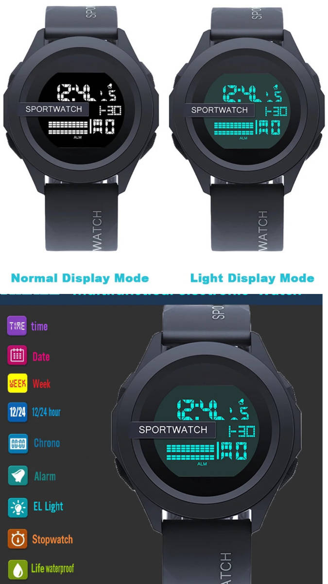 スポーツ腕時計 腕時計 時計 デジタル式  LED デジタル腕時計 デジタル 自転車 スポーツ  アウトドア キャンプ ランニング アウトドア