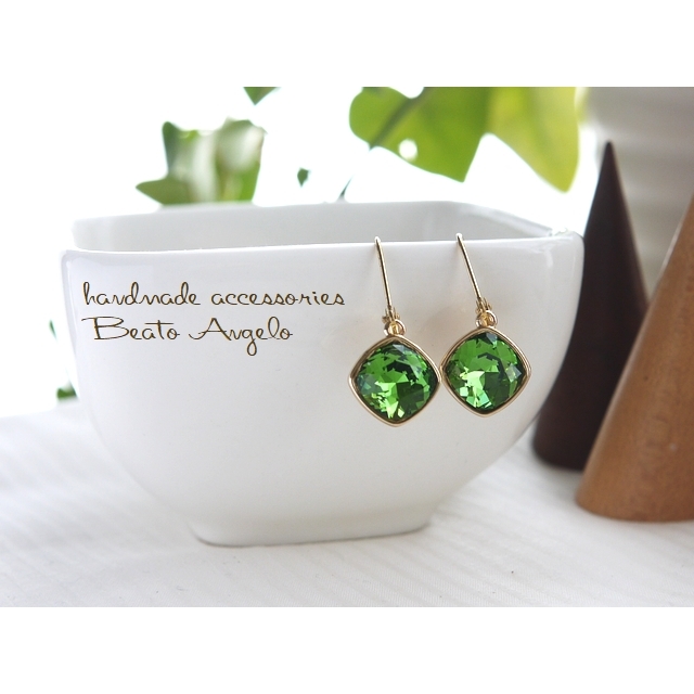 ◇◇+angelo+スワロフスキー 4470のピアス(p-044)ファーングリーン G 一粒 10mm フレンチフック
