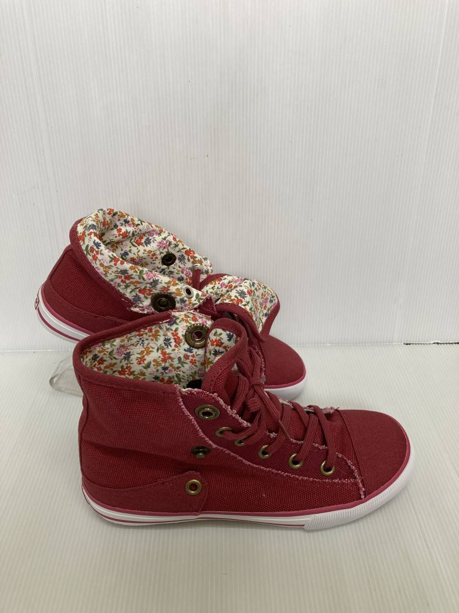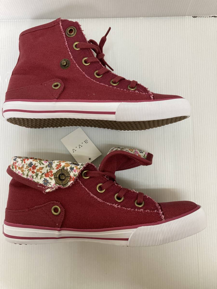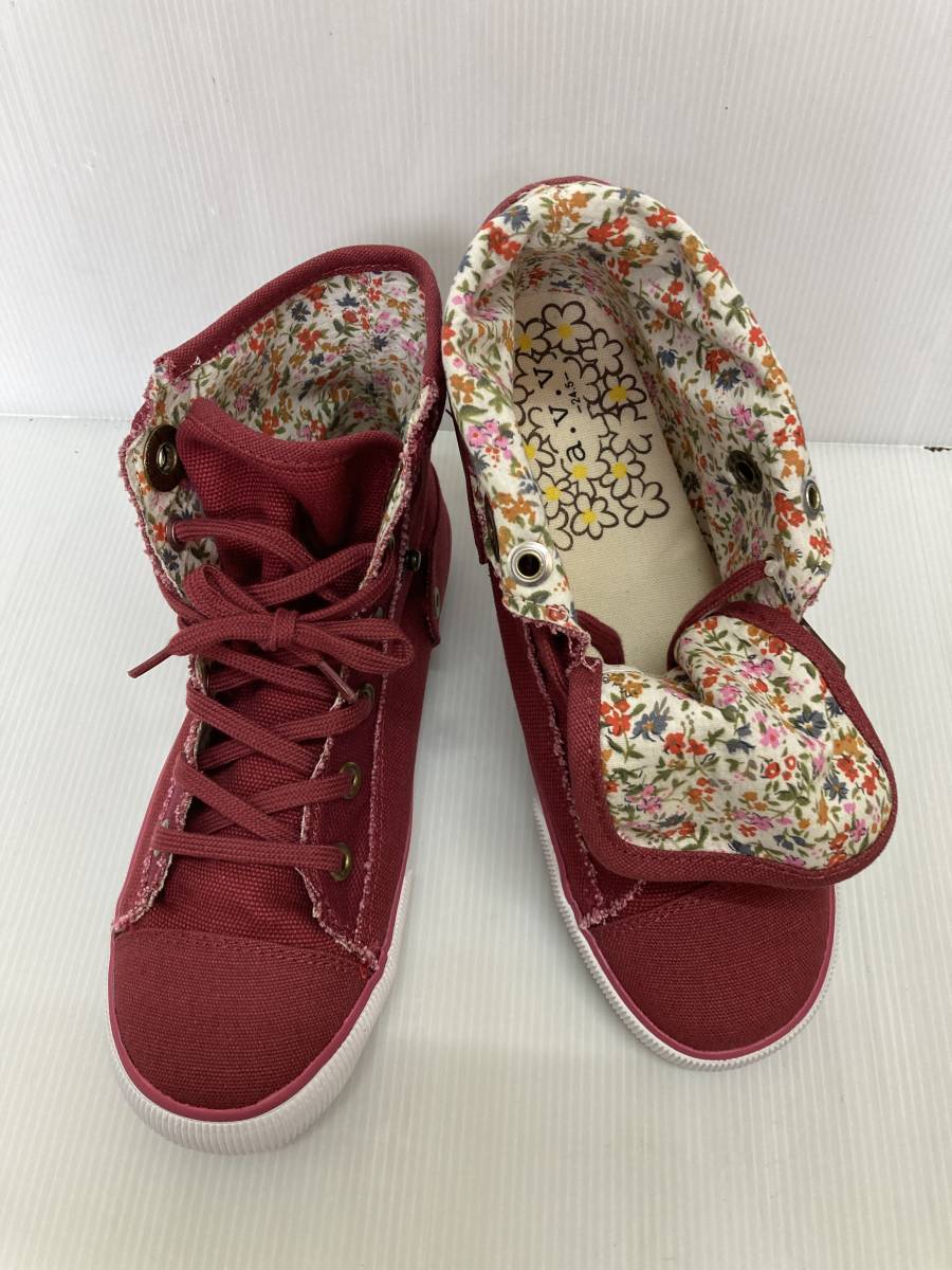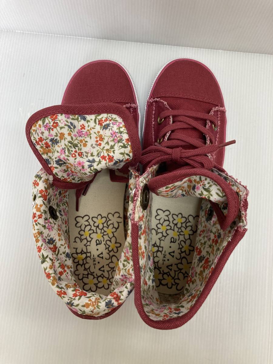 ●お買い得!AVV キャンバス HIカットスニーカー AVV2026 花ワイン 24.5㎝ 履き口を折り返して履けばかわいい花が柄が!かわいい足元