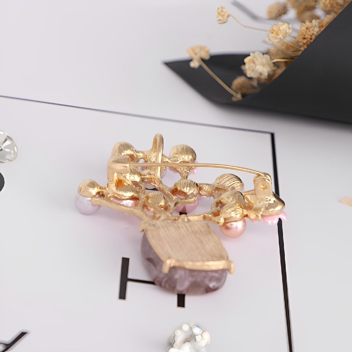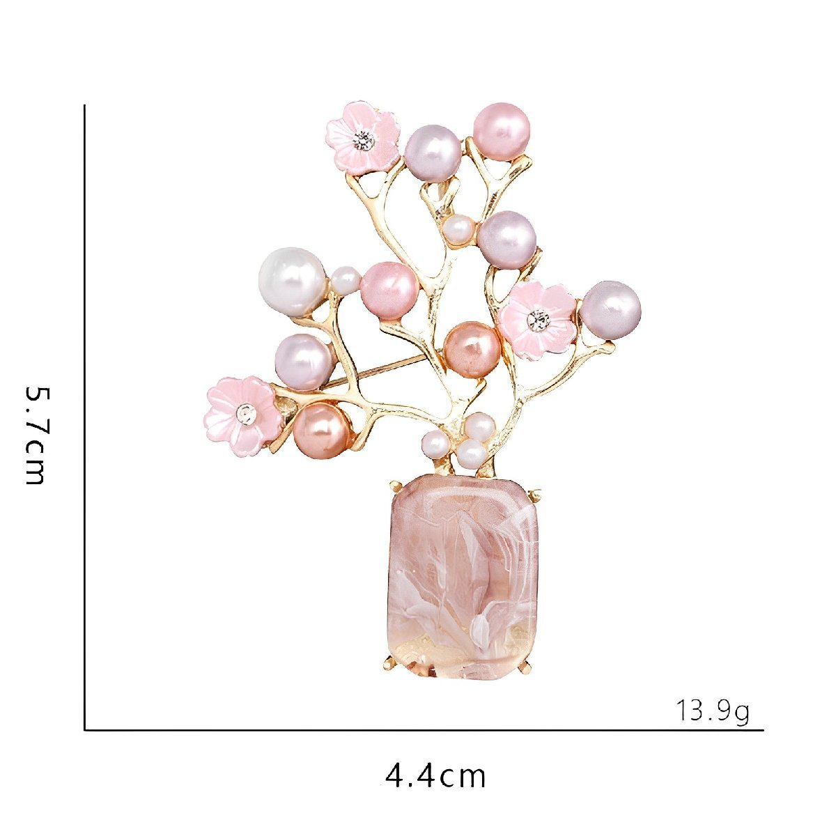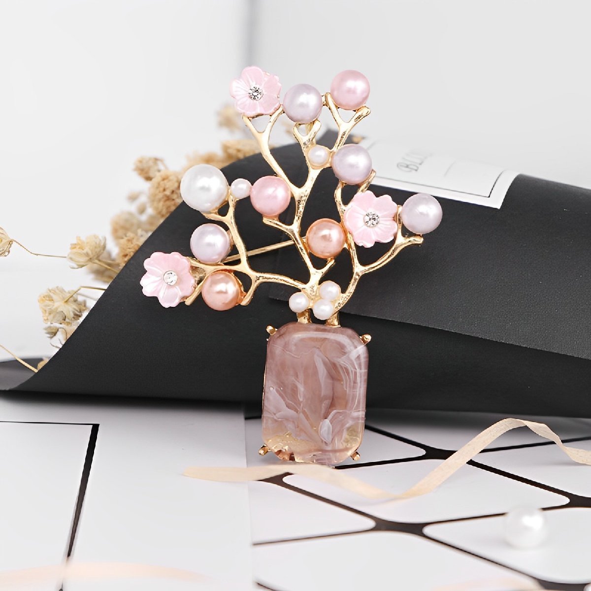 【花】ファッション パール 梅 石花瓶 生け花 モチーフ ブローチ