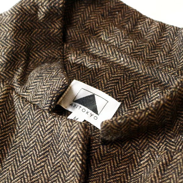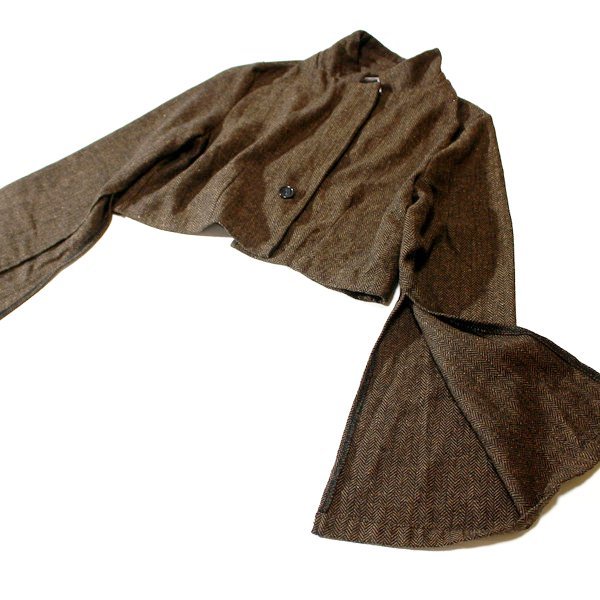 袖に大きなスリットが入ったヘリンボーン柄のジャケット(裏地無し)です。